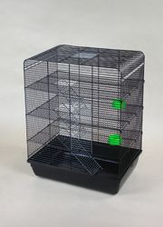 klatka Vitmix Remy dla gryzoniOcynkowana klatka Vitmix Remy posiada cztery piętra, po których zwierzątka mogą biegać. Piętra są połączone rampami, które stanowią dla gryzoni miejsce do ćwiczeń. Klatka przeznaczona jest dla szczurków, chomików i myszoskoczków. Estetyczny wygląd klatki Remy sprawi, że urządzenie będzie się dobrze prezentować w dowolnym miejscu mieszkania. Druciane półki zapewniają wygodę czyszczenia klatki. Wymiary klatki: 58x38x71,5 cm W zestawie z klatką jest wyposażenie: 3xpółka metalowa, 3xdrabinka metalowa, 2xmiska plastikowa, mix kolorów. Klatki wysyłane są losowo w zależności od stanów magazynowych. Nie ma możliwości wyboru wysyłanej klatki. Klatka dla chomikaChomik spędza w swojej klatce praktycznie całe życie, dlatego tak ważne jest, by zapewnić mu w niej jak najbardziej komfortowe warunki. Przy wyborze lokum dla tego sympatycznego gryzonia, trzeba koniecznie pamiętać o jego trybie życia. Chomiki w naturze mają w swojej norce oddzielne miejsce do spania, gromadzenia zapasów i to przeznaczone na toaletę. Planując urządzanie klatki należy uwzględnić jego specyficzne potrzeby, podzielić ją na strefy o konkretnym przeznaczeniu, Klatka nie powinna być zbyt mała, warto wybrać piętrową lub chociaż taką z dodatkową półką. Tym sposobem przy niewielkich rozmiarach kuwety, przestrzeń użytkowa jest dużo większa – dlatego czym więcej poziomów w klatce tym lepiej. Wtedy na parterze możemy pupilowi urządzić np. stołówkę i sypialnię, na pierwszym piętrze „salę ćwiczeń”, a na samej górze spiżarnię. Sprawdź naszą ofertę klatek dla chomika Chomik mieszkający w zamknięciu ma o wiele mniej ruchu niż jego dzicy kuzyni. Znakomitym rozwiązaniem tego problemu jest wstawienie do klatki specjalnego kołowrotka, w którym gryzoń może wybiegać się do woli spalając nadmiar kalorii zarazem poprawiając swoją kondycję fizyczną. Prócz kołowrotka, w wyposażeniu klatki nie może zabraknąć poidła, z którego chomik będzie pił wodę. Podawanie jej w misce nie sprawdza się, ponieważ zwierzę wywraca ją rozlewając całą zawartość lub wrzuca do miski ściółkę i resztki jedzenia, co powoduje rozwój bakterii. Picie nieświeżej wody jest niebezpieczne dla zdrowia chomików i jest najczęstszą przyczyną „choroby mokrego ogona”. Dlatego, jeśli zwierzak pije z poidełka, należy je regularnie myć i wymieniać wodę codziennie, niezależnie od tego czy chomik ją wypił. Kolejna niezbędna rzecz w klatce to, miska na pokarm. Powinna być nie za duża, jednak stabilna aby chomik jej nie wywracał, zarazem wysypując zawartość. Ostatnim bardzo ważnym elementem wyposażenia klatki dla chomika jest domek, w którym ten lubiący spać gryzoń, będzie spędzał większość dnia. Domek powinien mieć zdejmowany dach, co ułatwi nam dostęp do środka, aby posprzątać, zmienić posłanie lub po prostu sprawdzić czy lokator jest w środku. Sprawdź naszą ofertę akcesoriów wyposażenia klatki gryzoni