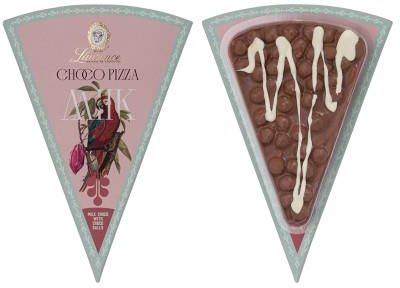 Oto prawdziwa gratka dla miłośników włoskich przysmaków: kolekcja wybornych czekolad Laurence w kształcie kawałka pizzy! Ten doskonały deser zawiera chrupiące kulki czekoladowe. Po zjedzeniu pizzy może warto zafundować sobie i najbliższym niebiański smakołyk w podobnym klimacie?Składniki: czekolada mleczna (sucha masa kakaowa 33,4%) (76%) [cukier, tłuszcz kakaowy, pełne MLEKO w proszku, miazga kakaowa, emulgator: lecytyna SOJOWA, aromaty: naturalny aromat waniliowy], kulki czekoladowe (19%) [mąka PSZENNA (GLUTEN), kukurydza, cukier, kakao w proszku o obniżonej zawartości tłuszczu, glukoza, olej roślinny (olej słonecznikowy), odtłuszczone MLEKO w proszku, emulgator: lecytyna słonecznikowa, aromaty], biała czekolada (sucha masa mleczna 22,8%) [cukier, masło kakaowe, pełne MLEKO w proszku, emulgator: lecytyna SOJOWA, aromaty: naturalny aromat waniliowy]. MOŻE ZAWIERAĆ ŚLADOWE ILOŚCI SIARCZYNÓW, GLUTENU, MLEKA, JAJ, SOI, SEZAMU, ORZESZKÓW ZIEMNYCH I INNYCH ORZECHÓW.Warunki przechowywania: przechowywać w temperaturze nieprzekraczającej 18°C.