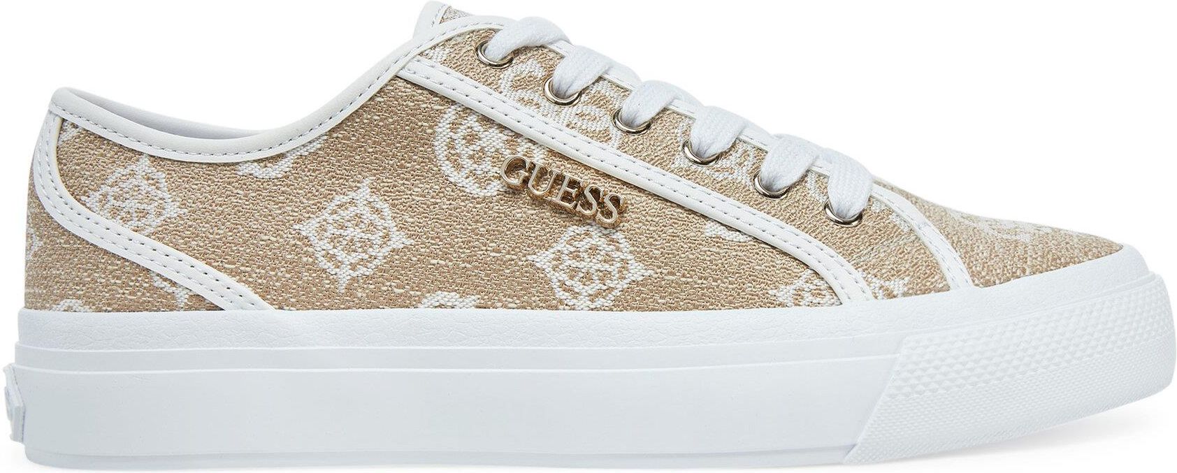 Białe sneakersy damskie Guess to stylowy wybór dla kobiet, które cenią elegancję i nowoczesność. Wykonane z wysokiej jakości imitacji skóry, łączą w sobie trwałość i estetykę. Twarda wyściółka gwarantuje komfort noszenia przez cały dzień, zapewniając jednocześnie odpowiednie wsparcie dla stóp. Idealne do codziennych stylizacji, te sneakersy dodadzą Twojemu lookowi szyku i klasy. Postaw na Guess i wybierz buty, które podkreślą Twoją wyjątkowość!