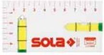 SOLA POZIOMICA AKRYLOWY LIBELLA R102 POZIOMNICA Akrylowy blok z libelkami R 102 Cechy R 102 Precyzyjna, frezowana CNC libella pozioma i pionowa Nieprzewodzące elektrycznie, nietłukące szkło akrylowe Kompaktowy, lekki, poręczny Odporny na wodę, ciepło i zimno Nadrukowana skala w siatce 5 mm Przezroczysty Zastosowanie R 102 Pomiar poziomy Pomiar pionowy Szczegóły techniczne opis przedmiotu: kompaktowa poziomica wymiary: 100x50x15mm materiał: szkło akrylowe kolor: czerwony tolerancja pomiaru, pozycja standardowa:1,00 mm/m (0,057°) liczba libelli poziomych: 1 Liczba fiolek pionowych: 1 powierzchnia pomiarowa: szkło akrylowe