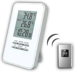 Funkcje termometru: czas, alarmFormat czasu: 12/24hWyświetlanie temperatury: w °C lub °FPamięć wartości min./maksPomiar temperatury wewnętrznej: -9 °C do +50 °CPomiar temperatury zewnętrznej: -35 °C do +50 °CBezprzewodowy czujnik do pomiaru temperatury zewnętrznejZasilanie: jednostka główna - 2 baterie AAA (LR03) (brak w zestawie), czujnik: 2 baterie AAA (LR03) (brak w zestawie)Kolor: biały