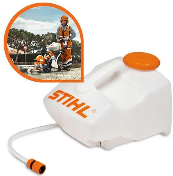 ZBIORNIK NA WODĘ Do wózka prowadzącego FW 20 Zbiornik na wodę do mobilnego zasilania w wodę przecinarek Stihl. Zestaw montażowy do wózka prowadzącego FW 20. Pojemność 13 litrów, wyposażony w złączkę.