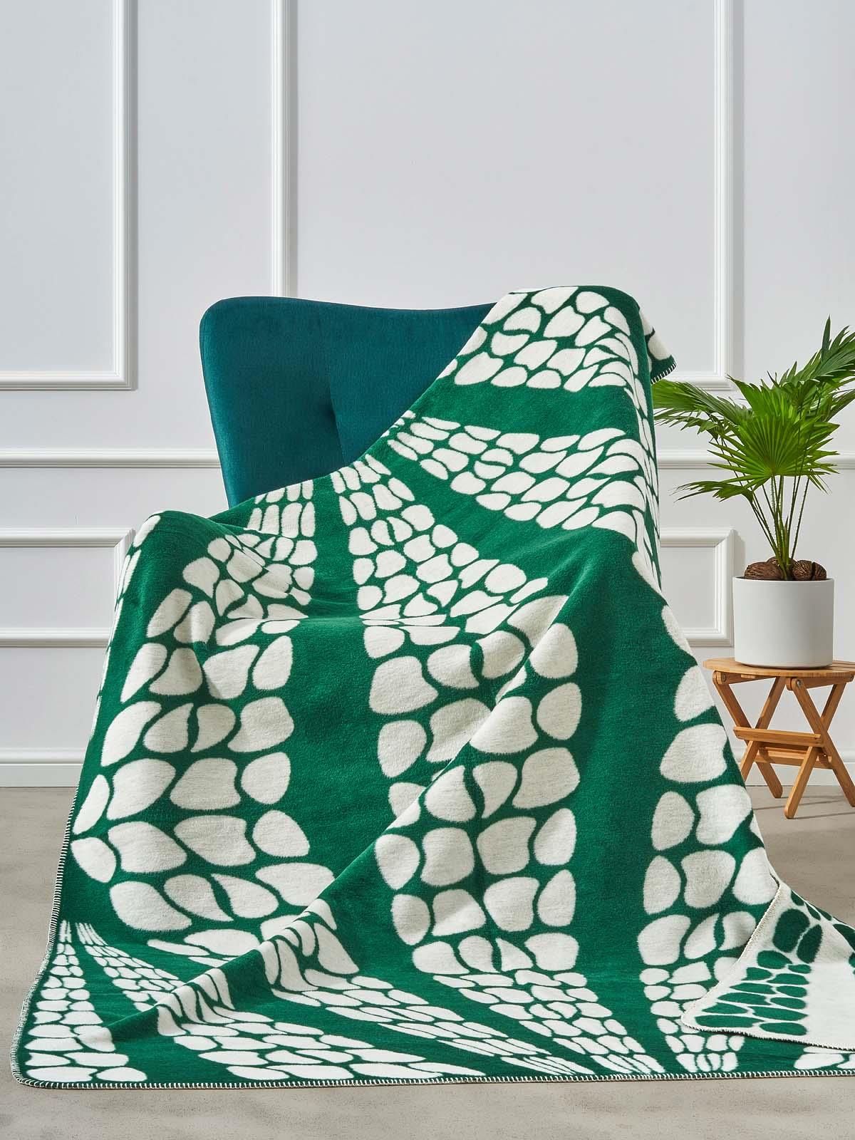 Unia Koc Bawełniano-Akrylowy 150X200 Biały Zielony W Geometryczne Lilie Józefów