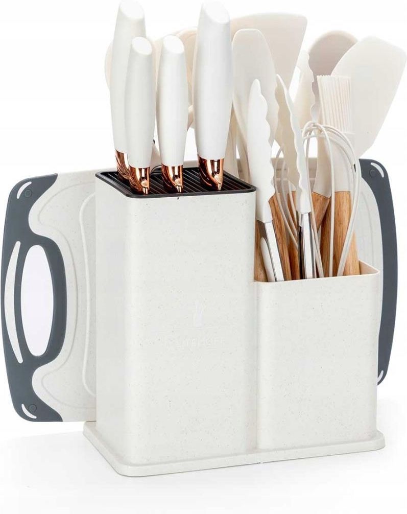 Zestaw noży i przyborów kuchennych w stojaku 19 elementów BIAŁY Józefów