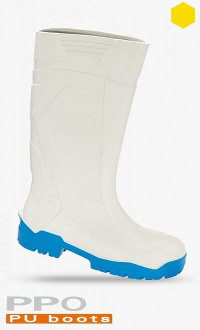 Buty całotworzywowe bezpieczne z poliuretanu z metalowym podnoskiem Model 1044. PN-EN ISO 20345, S4, CI, SRC. Seria PPO PU boots, Buty z poliuretanu. Rodzaj unisex. Podeszwa z litego poliuretanu. Podnosek metalowy