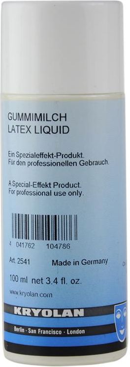 Latex marki Kryolan - wiodącej na całym świecie profesjonalnej marki oferującej wysokiej jakości kosmetyki charakteryzatorskie, kolorowe i pielęgnacyjne. Latex służy do tworzenia części ciała np. nosa, podbródka, do wykonywania łysin, jak również do imitowania ran i postarzania. Latex nanosi się bezpośrednio na skórę. Produkt posiada bardzo niską zawartość amoniaku. Kod produktu: Art. 2541