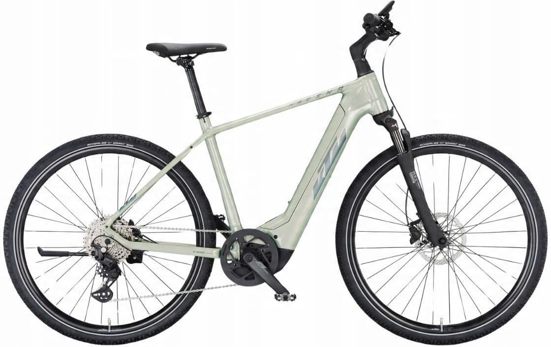 Rower elektryczny KTM Macina Cross 720 Dew Silver - M Rower elektryczny KTM Macina Cross 720 KTM Macina Cross 720 to prawdziwy wszechstronny rower elektryczny, zaprojektowany do różnych zastosowań. Doskonały do długich wycieczek rowerowych, relaksujących przejażdżek ścieżkami wzdłuż kanałów oraz jazdy po leśnych szlakach. Dzięki wyprostowanej pozycji siedzącej, rower zapewnia wygodę, pozwalając na pełne cieszenie się naturą w komfortowy sposób. Wersja CROSS LFC (LIGHT-FENDER-CARRIER) to rower na każdą pogodę. Silnik BOSCH PERFORMANCE LINE CX oraz najpotężniejsza bateria BOSCH PowerTUBE 750Wh oferują potężne wsparcie w każdych warunkach. Model MACINA CROSS 510 wyposażony jest w baterię SMART SYSTEM o pojemności 500Wh. Dodatkowo, aplikacja EBIKE FLOW pozwala na pełną kontrolę nad rowerem i łączenie go z cyfrowym światem. Dzięki mistrzowskiej pracy inżynierów, geometria ramy KTM została zachowana, mimo zwiększenia pojemności i rozmiaru baterii. Dzięki innowacyjnemu systemowi POWER TUBE TOP LOADER (PTTL), wyjmowanie i wkładanie baterii nigdy nie było łatwiejsze. Specyfikacja System E: BOSCH PT-CX7I4 Rama: Macina Trekking Offroad Alloy6061; PT750Wh Bosch Gen.4 / T-2930 Widelec: Suntour NX1 coil LO 63mm Silnik: Bosch PERFORMANCE CX Gen.4 SMART SYSTEM - 25km/h / 85Nm Wyświetlacz: Bosch LED remote SMART SYSTEM / Bosch INTUVIA 100 LCD Display SMART SYSTEM Bateria: Bosch PowerTUBE 750Wh SMART SYSTEM hor. Ładowarka: Bosch STANDARD Charger 4A SMART SYSTEM Przerzutka tylna: Shimano Deore M5130-10 LG shadow+ Manetka: Shimano Deore M5130-10 LG display Korba: KTM E-COMP ISIS 170mm Q16 Korona: FSA steel 42T Direct Mount with chainguard Kaseta: Shimano LG400-10 / 11-43 Łańcuch: Shimano LG500 Hamulec: Shimano MT200 / MT200 2-Piston Tarcza hamulcowa: Shimano RT30 CL 180 / 160 Koła: KTM Line - Shimano Deore M6000 CL 32H 100-5QR / Ryde Rival Sport 32H 622x25C / DT Champion 2.0 black Opona przednia: Schwalbe Smart Sam 47-622 RT Opona tylna: Schwalbe Smart Sam 47-622 RT Uchwyty: KTM Comp Ergo Lock Kierownica: KTM COMP II low rizer 640mm Mostek: KTM +20° ICR Ster: Acros AICR internal 1.1/8"-1.5" angle limit Siodełko: Selle Royal Essenza Athletic Sztyca siodełka: KTM COMP II 30.9/350 Pedały: MTB-Pedal VP-195E alloy Bagażnik: Racktime light (snap-it 2.0) Oświetlenie przednie: Litemove SE-150 LED 150Lux Błotnik: Racktime Alu 72mm B&M Xeltec Stopka: KTM 28" adjustable Waga: 24,20 kg Dopuszczalna masa całkowita: 143 kg KTM Macina Cross 720 to rower elektryczny zaprojektowany z myślą o wszechstronnych użytkownikach, którzy szukają roweru na różne tereny i warunki. Dzięki silnikowi BOSCH PERFORMANCE LINE CX oraz baterii PowerTUBE 750Wh, oferuje dużą moc i niezawodność, idealny do jazdy w różnych warunkach. Wyjątkowa geometria ramy, system POWER TUBE TOP LOADER oraz nowoczesne technologie Shimano sprawiają, że jazda na tym rowerze jest wygodna i komfortowa przez cały dzień. To świetny wybór dla osób szukających wszechstronnego roweru trekkingowego z elektrycznym wspomaganiem. 12301011_11 KTM Bikes 9008594472174