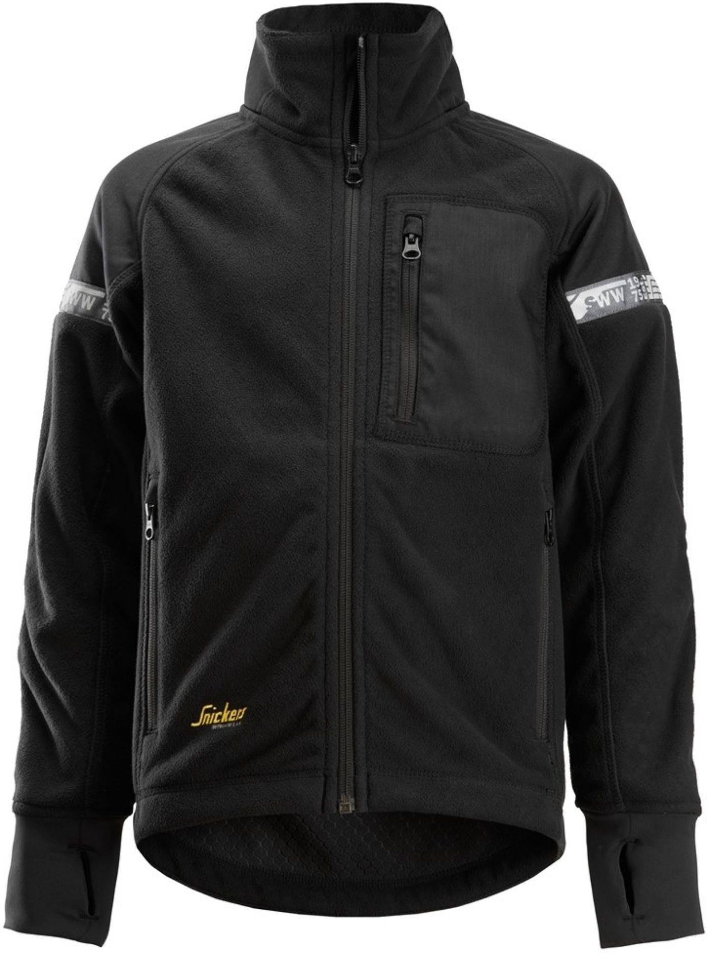 Kurtka polarowa AllroundWork Junior Snickers 7507, r. 122/128 Kurtka polarowa AllroundWork Junior Snickers 7507, rozmiar 122/128, kolor czarny. Wiatroszczelna kurtka polarowa zaprojektowana do codziennych zabaw. Uniwersalna kurtka dziecięca zapewniająca łatwość ruchu i ochronę przed wiatrem bez uszczerbku dla komfortu. Wygodna tkanina polarowa Ochrona przed wiatrem Wzmocnienia z materiału CORDURA® na łokciach i ramionach Profilowane rękawy Elastyczne mankiety, z otworem na kciuk dla dodatkowej funkcjonalności Materiał Główny: 100% poliester; 300 g/m². Wzmocnienie: 100% poliamid CORDURA®; 205 g/m².