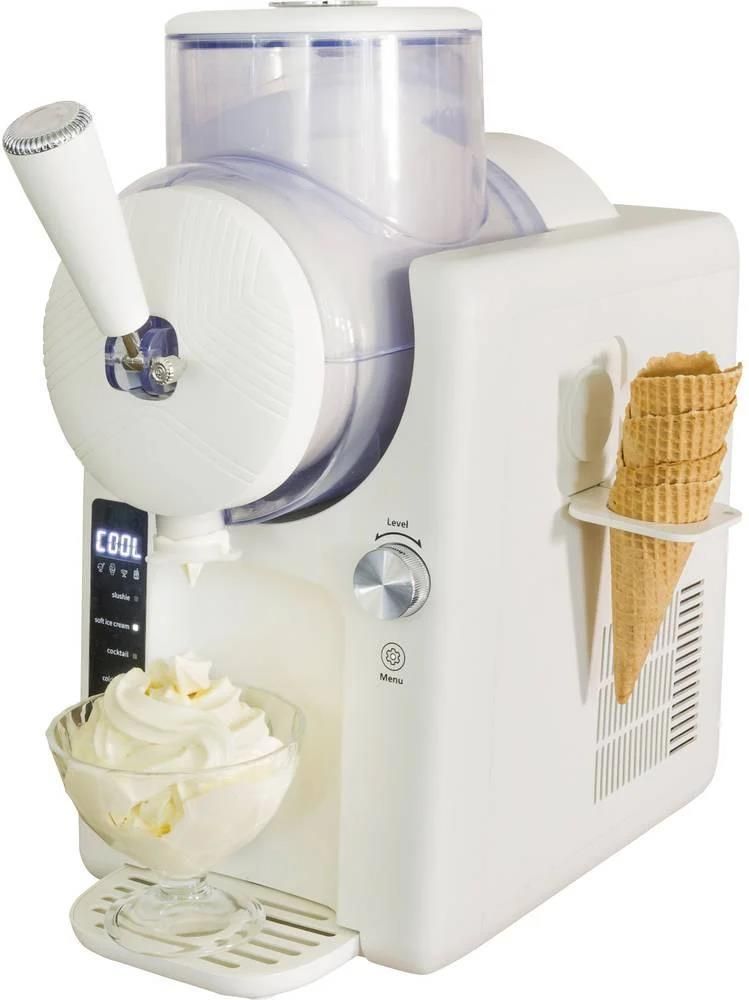 Unold 2in1 Sofie Maszynka do lodów Z agregatem chłodzącym 2 l Unold 2 w 1 maszyna do lodów kruszonych i miękkich Sofie Chłodzenie sprężarkowe Orzeźwiający lód mrożony w zaledwie 30 minut Pojemnik o pojemności ok. 2 litrów Lodowata zabawa dla osób w każdym wieku: Profesjonalna maszyna do robienia lodu kruszonego idealnie nadaje się do przygotowywania mrożonych koktajli, frappe, koktajli mlecznych i wielu innych orzeźwiających napojów. Ciche chłodzenie kompresorowe: Profesjonalne chłodzenie pozwala w mgnieniu oka delektować się lodowatymi napojami i w razie potrzeby utrzymuje je w idealnej temperaturze przez wiele godzin. Opis tego produktu został przetłumaczony automatycznie. Equipment: Wyświetlacz LED ze wskaźnikiem pozostałego czasu pracy Cyfrowy timer Cztery programy z wyborem czasu Pojemność ok. 1,5 litra 6 porcji na sesję Łatwe czyszczenie Przyjazny dla klimatu czynnik chłodniczy R290 Technical specifications: Dalsze dane techniczne: Długość kabla: 1 m · Głębokość produktu: 435 mm · Kolor: biały · Moc: 150 W · Pojemność: 2 l · Specyfikacja urządzenia kuchennego: Z agregatem chłodzącym · Szerokość produktu: 226 mm · Waga: 11.5 kg · Wysokość produktu: 442 mm Package contents: Maszyna do lodów kruszonych i miękkich 2 w 1 Sofie, Instrukcja obsługi, Broszura z przepisami