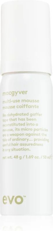 EVO Macgyver Mousse, 50 ml, Pianki do włosów dla kobiet, Czy Twoje włosy są delikatne i wyglądają na przyklapnięte? Pianka do stylizacji EVO Macgyver Mousseumożliwi Ci uzyskanie wymarzonej fryzury pełnej objętości. Zapewnia włosom objętość i blask, unosi je i pomaga stylizować fryzurę zgodną z Twoimi wyobrażeniami. Zyskasz w ten sposób objętość bez obciążenia, długotrwałą kontrolę oraz niezawodne utrwalenie włosów od nasady aż po końce. Oklapnięte włosy staną się przeszłością, a zamiast tego pojawi się objętość, o jakiej marzyłaś. Właściwości: utrwala fryzurę zapewnia sprężystość włosów nie skleja i nie obciąża włosów Sposób użycia: Przed użyciem dobrze wstrząśnij. Nanieś na wilgotne włosy. Wymodeluj w pożądany sposób.