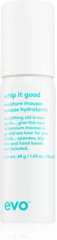 EVO Whip It Good Moisture Mousse, 50 ml, Pianki do włosów dla kobiet, Czy Twoje włosy są delikatne i wyglądają na przyklapnięte? Pianka do stylizacji EVO Whip It Good Moisture Mousseumożliwi Ci uzyskanie wymarzonej fryzury pełnej objętości. Zapewnia włosom objętość i blask, unosi je i pomaga …