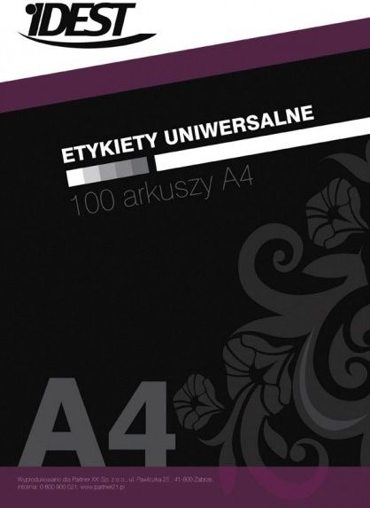 Etykiety samoprzylepne dostarczane są na arkuszach o formacie A4. Współpracują ze wszystkimi rodzajami drukarek igłowych, atramentowych i z większością drukarek laserowych (patrz zalecenia producenta drukarki). Opakowanie etykiet zawiera 100 arkuszy A4 o wymiarach 210x297 Opis towaru: Rozmiar etykiety: 70x42,3 mm Rozmiar arkusza: A4 Ilość etykiet na arkuszu: 21 szt. Ilość arkuszy w opakowaniu: 100 szt. Kolor papieru: biały Przeznaczone do drukarek:igłowych, atramentowych i z większością drukarek laserowych Etykiety dostępne są w wersji z tzw. Quatro Clean Technology tj. z krawędziami bezpieczeństwa, zapobiegają odkładaniu się kleju na mechanizmie drukarki.