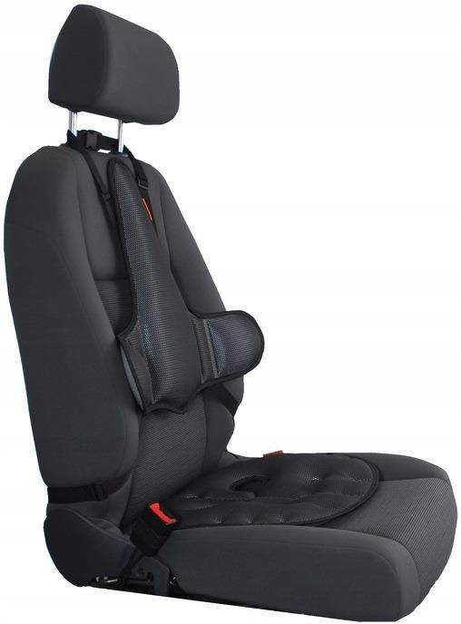 Nakładka rehabilitacyjna na fotel samochodowy KULIK SYSTEM Nakładka samochodowa Kulik System jest polecana dla kierowców i pasażerów w celu zachowania właściwej postawy w czasie jazdy samochodem. Szczególnie wskazana osobom cierpiącym na bóle kręgosłupa. Sprawdza się jako element rehabilitacji oraz profilaktycznie dla wszystkich chcących uniknąć problemów z plecami. Jak działa nakładka samochodowa Kulik System? Zwykle dłuższa jazda samochodem, przy nieprawidłowej postawie, wywołuje bóle kręgosłupa, wiercenie się w fotelu i dekoncentrację z powodu braku komfortu. Kręgosłup walczy z ciągłym zakłócaniem równowagi, męczy się i jest podatny na urazy. W takich sytuacjach najskuteczniejszą pomocą będzie Nakładka rehabilitacyjna na fotel samochodowy polskiej firmy KULIK SYSTEM. To opatentowany produkt. Posiada specyficzne, niepowtarzalne kształty, dzięki którym: Amortyzuje wstrząsy, eliminuje naprężenie i zmęczenie mięśni, zapewniając wysoki komfort podczas jazdy samochodem. Pomaga utrzymać kręgosłup w fizjologicznej pozycji, a tym samym pozwala uniknąć bólu i urazów. Przyczynia się do zwiększenia przestrzeni dla pracy serca, płuc i żołądka. Budowa Nakładki na fotel samochodowy Składa się z dwóch części: Część górna - poduszka mocowana na oparciu fotela Pozwala bez wysiłku utrzymać kręgosłup w prawidłowej pozycji, przeciwdziała garbieniu się. Profil poprzeczny stanowi podparcie dla lędźwiowego odcinka kręgosłupa. Profil pionowy podpiera kręgosłup aż do wysokości kręgów piersiowych oraz stymuluje niewielkie zmiany pozycji ciała podczas jazdy (tzw. siedzenie dynamiczne), wzmacniając mięśnie grzbietowe. Część dolna - poduszka umieszczana na siedzisku Otwory na guzy kulszowe umożliwiają ich odciążenie, dzięki czemu wstrząsy i drgania nie są przenoszone na kręgosłup, lecz amortyzowane przez mięśnie ud. Wgłębienia i kanały odpowietrzające nie dopuszczają do przegrzewania gruczołu krokowego u mężczyzn. Specjalna powłoka antypoślizgowa, którą pokryty jest spód siedziska, zapobiega przemieszczaniu się nakładki podczas jazdy. Zmniejsza też siłę wyrzutu z fotela w razie nagłego hamowania, chroniąc tym samym stawy kolanowe i kręgosłup. Używając Nakładki na fotel samochodowy intuicyjnie utrzymasz właściwą postawę, bez zaprzątania tym swojej uwagi. Kolor nakładki: CZARNY Wymiary: