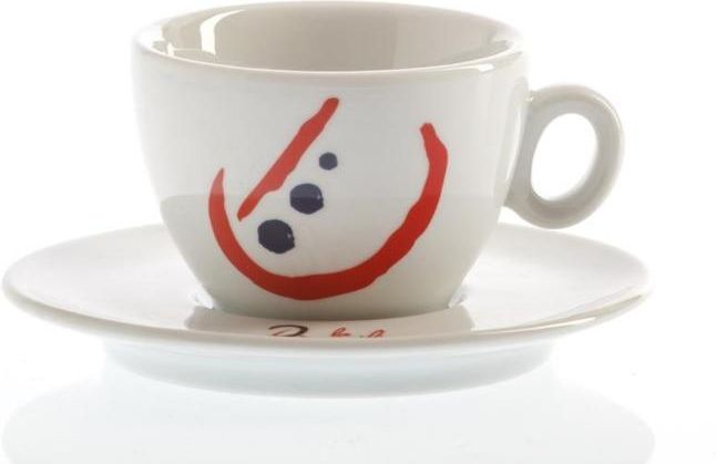 Filiżanka do cappuccino, z grubej porcelany, o pojemności 140 ml z logo palarni LA BRASILIANA. Wyprodukowana przez fabrykę FAC SpA / Porcellane ACF w miejscowości Albisola Superiore (w Ligurii). W komplecie wraz ze spodeczkiem.