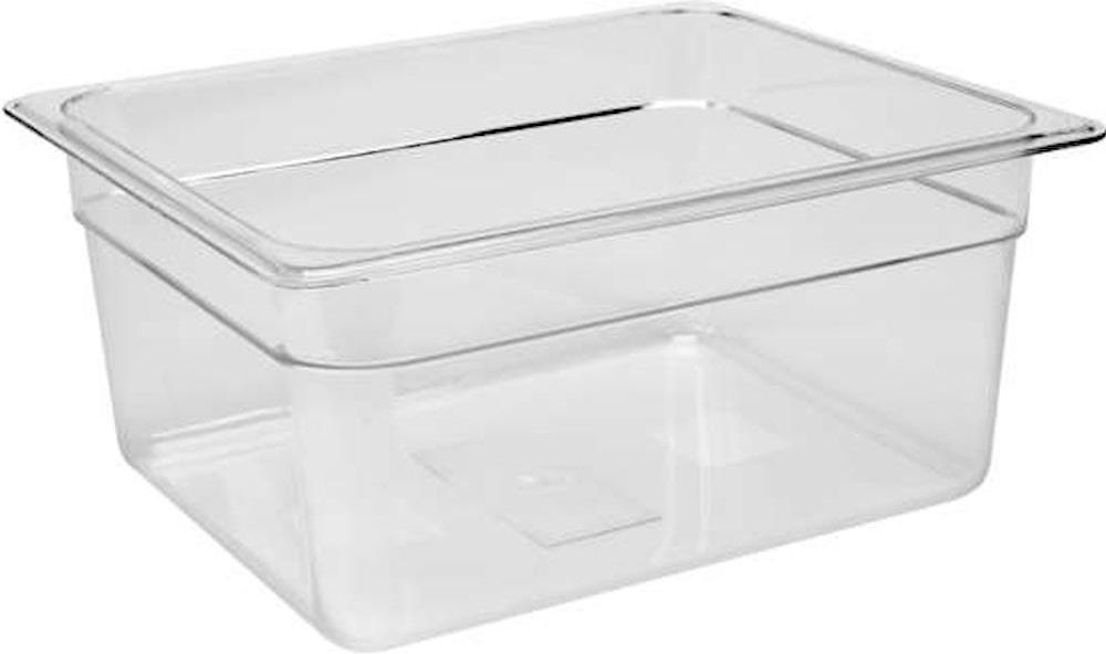 Pojemnik gastronomiczny GN 1/2 o głębokości 15 cm i pojemności 8,9 l. Pojemnik wykonany z najwyższej jakości poliwęglanu PC, bardzo wytrzymały i odporny na uszkodzenia. Gładka powierzchnia i ranty oraz zaokrąglone naroża ułatwiają utrzymanie pojemnika w czystości. Poliwęglan nie wchłania żadnych substancji ani zapachów, nie zniekształca również smaku przechowywanych potraw. Odporność na temperaturę od - 40oC do 99oC, dzięki czemu pojemnik można przechowywać w warunkach chłodniczych jak i przechowywać w nim gorące potrawy. Pojemnik nie jest przeznaczony do stosowania w bemarach i piecach KP. Dodatkowo pojemniki posiadają skale w litrach, dzięki której można kontrolować poziom zawartości. Pojemnik posiada dodatkowe przetłoczenie na obwodzie co wzmacnia jego konstrukcję, zabezpiecza przed zagnieceniami podczas eksploatacji oraz umożliwia piętrowanie. Pojemnik można myć w zmywarkach. Pojemnik ma wymiary zgodne ze standaryzacją GASTRO NORM PN-EN 631-1:1996.