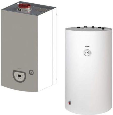 Zestaw zawiera Kocioł kondensacyjny jednofunkcyjny EcoCondens Silver PRO 25 1f z wbudowanym zaworem trójdrożnym i czujnikiem NTC Zasobnik SWK-120l TERMET SILVER PRO Gazowe kotły kondensacyjne Silver Pro, to jedne z najnowocześniejszych urządzeń na rynku europejskim wykorzystujące efekt kondensacji do celów grzewczych. Kotły te są niezwykle przyjazne w obsłudze - poprzez nieskomplikowany panel sterowania oraz w serwisowaniu - dzięki zwartej konstrukcji. Atrakcyjny wygląd oraz kompaktowe wymiary umożliwiają zastosowanie produktów Silver Pro do każdej aranżacji w kuchni (swobodnie mieszczą się w ciągu szafek kuchennych) i innych pomieszczeniach użytkowych. Szeroki zakres modulacji sprawia, że kotły te idealnie sprawdzają się również do ogrzewania małych powierzchni oraz obiektów o niskim zapotrzebowaniu na ciepło. Zalety klasa energetyczna: A 8-litrowe naczynie wzbiorcze umieszczone z boku urządzenia system komunikacji OPEN-THERM poprzez regulator EASY REMOTE (zdalne sterowanie parametrami kotła z pozycji regulatora pokojowego) nowoczesny wymiennik ciepła o wysokiej sprawności, w postaci pojedynczej wężownicy wykonanej ze stali nierdzewnej niezwykle szeroki zakres modulacji mocy: od 12% do 100% wentylator z płynną regulacją obrotów (sterowany elektronicznie) palnik cylindryczny ze stali nierdzewnej o niskiej emisji NOx (klasa 6) grupa hydrauliczna w postaci hydrobloku montowania na szybkozłączach kompletny system zabezpieczeń możliwość pracy z modułami wielostrefowymi do systemów grzewczych możliwość współpracy z pompami ciepła powietrze/woda dodatkowa izolacja dźwiękochłonna zapewnia cichą pracę kotła (zaledwie 48 dB!) współpraca z kolektorami słonecznymi wysokoefektywna pompa obiegowa współpraca z zasobnikami c.w.u. przez zawór trójdrożny Dane techniczne Parametry Wartość Moc cieplna (przy temp. 80/60°C) 3,7 - 24,0 kW Moc cieplna (przy temp. 50/30°C) 4,1 - 26,5 kW Obciążenie cieplne 3,8 - 24,5 kW Sezonowa efektywność energetyczna ogrzewania pomieszczeń ηs 95 % Sprawność użyteczna kotła przy nominalnym obciążeniu i średniej temp. wody kotłowej 70°C 98,0 % Sprawność użyteczna kotła dla częściowego obciążenia kotła i temp. wody powrotnej 30°C 108,0 % Klasa sezonowej efektywności energetycznej ogrzewania pomieszczeń A Wytworzone ciepło użytkowe przy znamionowej mocy cieplnej P4 (dla kotłów modulowanych średnia arytmetyczna max i min) 24,3 kW Wytworzone ciepło użytkowe przy 30% mocy znamionowej P1 (dla kotłów modulowanych 30% średniej arytmetycznej) 8,0 kW Sprawność użytkowa η4 88,9 % Sprawność użytkowa η1 99,7 % Maksymalne ciśnienie wody 3 bar Maksymalna temperatura pracy c.o. 95 °C Temperatura nastawiana standardowa 40-80 °C Temperatura nastawiana zredukowana 25-55 °C Wysokość podnoszenia pompy przy przepływie 0 0,6 bar Zakres regulacji temperatury wody 30-60 °C Poziom mocy akustycznej LWA 48 dB Poziom emisji dwutlenku azotu 38 mg/kWh Klasa emisji dwutlenku azotu (NOx) 6 Pojemność naczynia wzbiorczego 8 dm³ Pobór mocy w trybie czuwania PSB 0,004 kW Zużycie energii elektrycznej przy pełnym obciążeniu elmax 0,077 kW Zużycie energii elektrycznej przy częściowym obciążeniu elmin 0,059 kW Rodzaj i napięcie prądu elektrycznego ~230±10%/50Hz V Stopień ochrony IPX4D Przyłącze wody grzewczej i gazu G3/4 cale Wymiary gabarytowe (wys. x szer. x gł.) 775 x 400 x 300 mm Masa kotła 33,5 kg Materiał wymiennika stal INOX TERMET SWK 120 Zasobnik TERMET SWK 120 należy do najnowocześniejszych rozwiązań zaopatrywania w ciepłą wodę domów jednorodzinnych i wielorodzinnych oraz obiektów użyteczności publicznej, w których znajduje się kilka punktów poboru ciepłej wody użytkowej. Charakteryzują się niedużymi wymiarami, co pozwala na łatwe zainstalowanie zasobnika m.in. w niskiej kotłowni. zasilanie od góry trwałe i bezpieczne w eksploatacji łatwe w obsłudze i montażu płaszcz obudowy wykonany z blachy stalowej pokrytej białą farbą proszkową zbiornik zasobnika wykonany z blachy stalowej pokrytej wewnątrz warstwą specjalnej emalii ceramicznej chroniącej przed korozją i zapewniającej dobrą jakość podgrzewanej wody wbudowana anoda magnezowa zapobiegająca korozji zbiornika Dane techniczneParametry Wartość Klasa efektywności energetycznej podgrzewania wody A Przyłącze wody zimnej G3/4 cale Przyłącze wody ciepłej G3/4 cale Pojemność zasobnika 120 dm³ Powierzchnia wężownicy 1,0 m² Pojemność wężownicy 6,4 dm³ Stała wydajność c.w.u. (80/10/45°C) 12,5 dm³/min Stała moc grzewcza (80/10/45°C) 30 kW Parametry pracy zbiornika max. ciśnienie pr = 0,6 MPa; temp. robocza tm = 80ºC Parametry czynnika grzewczego max. ciśnienie pr = 1,0 MPa; temp. robocza tm = 80ºC Masa zasobnika bez wody 65 kg Wysokość zasobnika 1018 mm Średnica zasobnika 595 mm Przyłącze wody grzewczej G3/4 cale Przyłącze cyrkulacji G3/4 cale