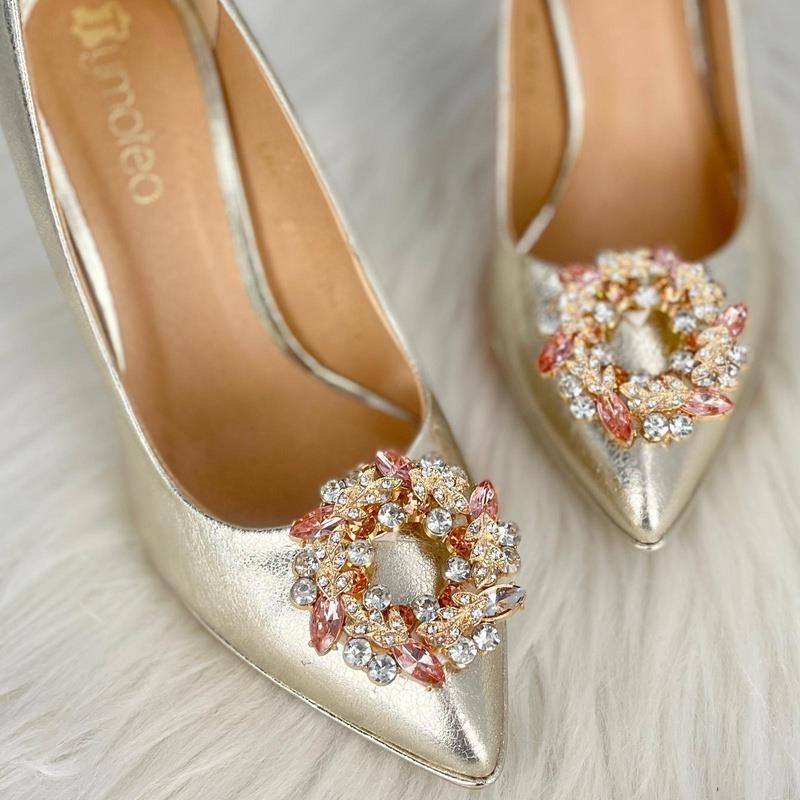 Ozdobne klipsy do butów z kryształkami to bestseller w naszym sklepie! Klipsy pochodzące od marki TYMOTEO LOVE - nasza autorska unikalna kolekcja biżuterii do butów, Klipsy wykonane ręcznie, z miłością i starannością. Niepowtarzalne wzory będą stylowym i eleganckim dodatkiem do klasycznego obuwia. Kształt klipsa w formie okręgu bogato zdobionego lśniącymi, mieniącymi się kryształkami. Klips jest duży i masywny ozdobiony lśniącymi kryształkami w odcieniach beżu z dodatkiem bezbarwnych, całość ozdobiona złotymi gałązkami, na których również lśnią kryształki. Ozdoby mocowane są za pomocą specjalnego klipsa, który bez problemu utrzymuje się na obuwiu, nie odkształca się oraz nie przeszkadza w użytkowaniu. Lubisz błyskotki? Kup już dziś biżuterię do Twoich butów i odmień w nie do poznania! Dodaj blasku swoim szpilkom! Przypinaj, odpinaj kiedy chcesz! Piękne duże ozdoby do butów TYMOTEO LOVE odmienią twoje obuwie niczym pantofelki z bajki! Sprawdzą się świetnie w przypadku klasycznego obuwia jak i tego ślubnego, dodając im uroku. Od tego momentu Twoje obuwie zacznie wyróżniać się na tle innych!