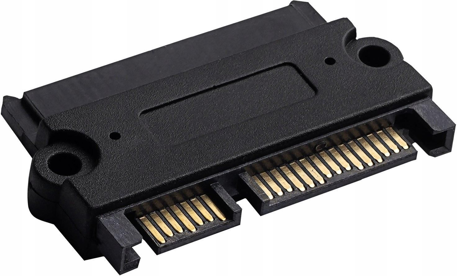 Adapter Akyga® AK-CA-83 to złącze dedykowane dyskom twardym HDD i SSD. Z obu stron przejściówki znajdują się złącza SATA 22-pin. Złącza te pozwolą podłączyć z jednej strony kabel SATA, a z drugiej dysk SSD lub HDD. Posiada on dwa otwory montażowe, które pozwolą przykręcić przejściówkę np. do szafy typu rack. Dzięki temu, podłączanie i odłączanie dysku z komputera będzie znacznie prostsze, a ryzyko wyrwania kabla z głębi szafy czy obudowy spadnie. Co więcej, po bokach złącza znajdują się plastikowe zaciski. Zabezpieczają one dysk twardy przed przypadkowym odłączeniem. Najważniejsze parametry produktu Kod produktu : AK-CA-83 Typ produktu: Akcesorium do obudów Wtyczka #1: Złącze żeńskie SATA (15 + 7 pin) Wtyczka #2: Złącze męskie SATA (15 + 7 pin) Kolor produktu: Czarny Temperatura pracy: 5 - 50 °C Opakowanie: UniBag Wymiary produktu (L x W x H): 29 x 47 x 8 mm Wymiary opakowania (L x W x H): 68 x 110 x 9 mm Waga netto: 8 g Waga brutto: 11 g Kod EAN: 5901720137869