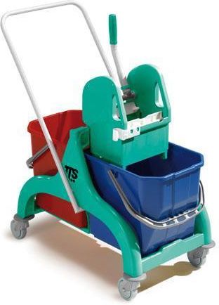 TTS Wózek NICK do sprzątania, 2-wiaderkowy o pojemności 2x15L lub 2x25 L TTS Wózek NICK do sprzątania, 2-wiaderkowy o pojemności 2x15L lub 2x25 L Dwuwiaderkowy wózek do profesjonalnego sprzątania. Został wyposażony w: wiadro niebieskie w rozmiarze 15L lub 25L służace do namaczania mopa wiadro czerwone w rozmiarze 15L lub 25L służace do płukania mopa rama ze wzmocnionego tworzywa sztucznego wyciskarkę szczękową z uchwytem na mopa podczas pracy boczną kuwetę na akcesoria uchwyt do prowadzenia wózka (busolę) 4koła 80mm do wózka z odbojnikami zabezieczającymi od uszkodzeń narożników Wysoka jakoś produktu z tworzywa o podwyższonej trwałości ABS zapewniająca długą żywotność oraz większą odporność na pęknięcia. Możliwość zakupienia poszczególnych elementów osobno pozwala na stworzenie wielu konfiguracji Atuty wózka TTS Nick Dostępny w dwóch rozmiarach o wygodnych pojemnościach 15L x2 lub 25L x2 Bardzo lekki 2x15L 7,5kg; 2x25L 11kg bez zawartości płynów Wyposażony w ciche gumowe koła Kompaktowy rozmiar Wyciskarka wyposażona w uchwyt na mop Możliwość wymiany poszczególnych elementów Występuje w kolorach:żółty, szary, zielony Dane techniczne wózka Wymiary:Wózek „NICK” 2x15L 41x66x88cm Wymiary:Wózek „NICK” 2x25L 43x73x94cm 2x15L 7,5kg bez zawartości płynów 2x25L 11kg bez zawartości płynów Pojemność: 15 l, 25 l; Kolor ramy: Zielony, Szary