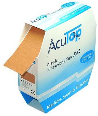 AcuTop Tape Classic, 5 cm x 35 m, beżowy Wskazania: AcuTop Tape Classic, 5 cm x 35 m, beżowy, to plastry do kinesiotapingu, po różnego rodzaju urazach w celu przyspieszenia rekonwalescencji i złagodzenia jej objawów. W odróżnieniu od gipsu czy ortez, taśmy nie ograniczają całkowicie ruchu i nie utrudniają wykonywania codziennych obowiązków, a nawet uprawiania sportu. Wskazania do stosowania: bóle obrzękowe; choroby zwyrodnieniowe; niestabilność stawów; urazy; naciągnięcia; skręcenia; dysfunkcja układu krwionośnego oraz limfatycznego. Właściwości: AcuTop Tape Classic, 5 cm x 35 m, beżowy, stanowią wsparcie oraz chronią przed kontuzjami, dlatego tak bardzo są cenione przez sportowców oraz środowisko medyczne. Plastry cechuje długotrwałe utrzymywanie aplikacji i komfort użytkowania. Dobrze przylegają do ciała, są elastyczne i nie krępują ruchów co pozwala na codzienną aktywność i zapewnia wygodę. Nie wyłączając stawu z codziennej aktywności plastry wspomagają jego regenerację i przyspieszają powrót do pełnej sprawności. Tapy są też formą terapii po urazie, pozwalającą skrócić okres rekonwalescencji i przyspieszyć powrót do pełnej sprawności. Kinesiotaping jest bezpieczną metodą leczniczą w związku z tym może być wykorzystywana również u dzieci. Największą jego zaletą jest bezbolesna aplikacja i nieograniczanie ruchu. Zadaniem kinesiotapingu za pomocą AcuTop Tape Classic jest: przyspieszenie regeneracji po urazie; zwiększenie zakresu ruchu w stawie; zmniejszenie dolegliwości bólowych; zapobieganie kontuzji; zmniejszenie obrzęków; możliwość stosowania u dzieci i dorosłych; wielorakie zastosowanie; duża skuteczność; możliwość samodzielnej aplikacji (po uprzedniej konsultacji z fizjoterapeutą); długi okres użytkowania; metoda praktycznie bez skutków ubocznych (działanie zgodnie z funkcjonowaniem organizmu) Skład: materiał: 93% bawełna, 7 % elastan klej: mocny klej akrylowy Stosowanie: Szerokość 5 cm pozwala na wycięcie większości aplikacji. Z łatwością można stosować ją do wszystkich czterech najbardziej popularnych sposobów kinesiotapingu (w kształcie litery "I", "Y", "X","F"). Taśma ta idealnie nadaje się do zastosowania na obszarze całego ciała, a specjalne linie ułatwiają wycinanie i przygotowanie aplikacji. Opakowanie: 1 sztuka (5 cm x 35) Przed użyciem zapoznaj się z treścią instrukcji używania i etykietą bądź skonsultuj się z lekarzem.