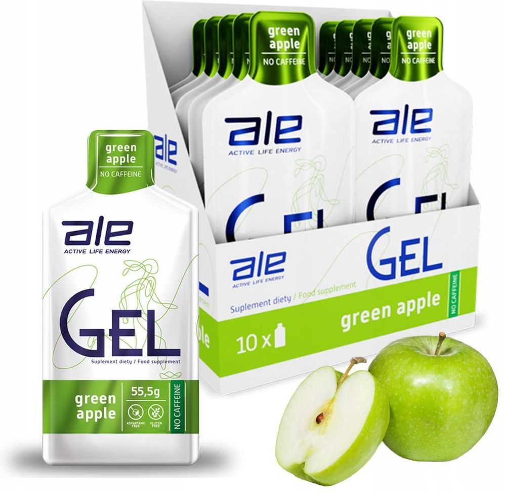 ALE - GEL 10x55,5g Suplement diety ALE Gel Green Apple to żel energetyczny nowej generacji. Wysoka kaloryczność, optymalna konsystencja i farmaceutyczna jakość zapewniają skuteczne wsparcie organizmu podczas wysiłku fizycznego. Składniki - Porcja: 55,5g - Porcji w opakowaniu: 10 - Opakowanie: 555g …