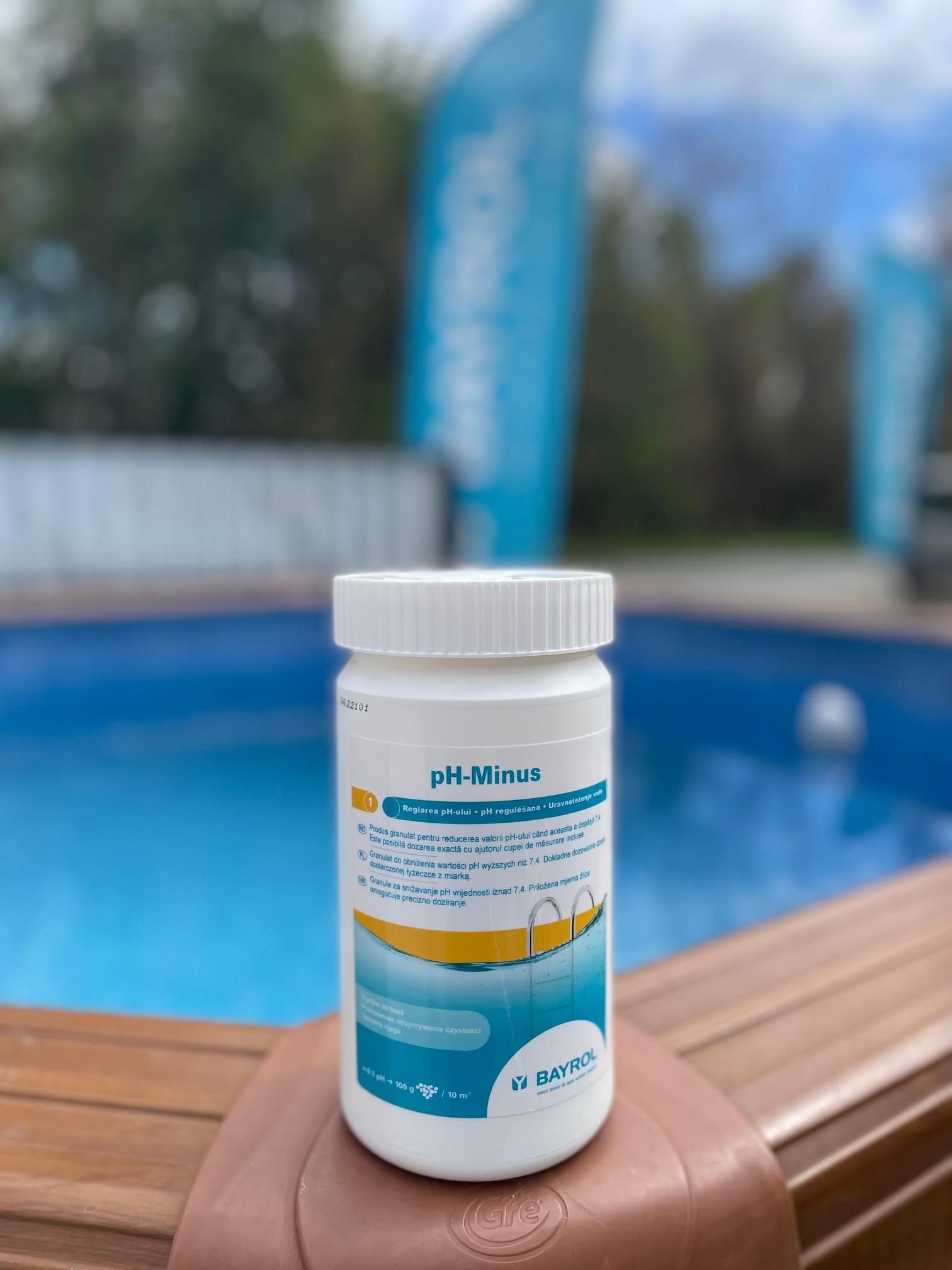 Bayrol pH Minus 1,5 kg - proszek obniżający pH Bayrol pH Minus 1,5 kg to kwaśny środek do obniżania wartości pH. Regularnie stosowany w basenach kąpielowych dla regulacji odczynu pH wody . Pomiar wartości pH należy robić nie rzadziej niż raz w tygodniu. pH Minus należy używać, gdy pH wody jest większe niż 7,4 . Utrzymywanie optymalnego zakresu pH [7.0 - 7.4] zagwarantuje, skuteczne działanie pozostałych środków chemicznych, zminimalizuje podrażnienia oczu i skóry oraz zmniejszy problem z odkładaniem się osadów wapnia. Praktyczne opakowanie pH-Minus 1,5 kg dla mini basenów i spa . Produkt pakowany jest w zakręcaną puszkę o wadze 1,5 kg. Zakrętka ma specjalne zabezpieczenie chroniące przed otwieraniem przez dzieci. Waga opakowania jest odpowiednia do stosowania w niewielkich ogrodowych basenach (mini-pool). Ta wielkość wystarczy do regularnego stosowania w basenach do 5-10 m3 przez kilka tygodni. Korektor pH w proszku może ulegać naturalnemu zbryleniu w szczelnie zamkniętym opakowaniu. Nie jest to jego wadą i nie obniża skuteczności tego produktu. Dozowanie Obniżenie poziomu pH wody o 0,1 wymaga użycia 100 g (0,1 kg) pH-Minus na każde 10m3 wody. Przykład: Dla basenu 30 m3 zmierzyliśmy wartość pH 7,6. Chcemy obniżyć do 7,1, a zatem o 0,5. Powinniśmy więc wsypać 1,5 kg pH Minus. Prowadzimy sprzedaż produktów BAYROL od ponad 18 lat. Szukaj naszych produktów na Allegro i w Internecie.