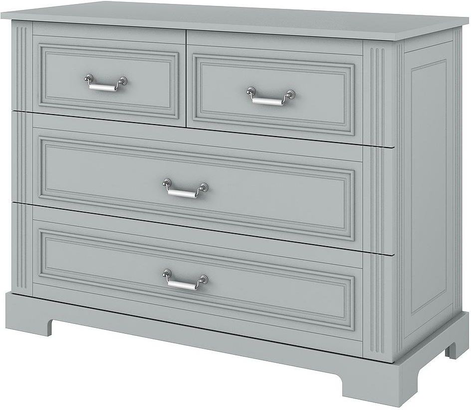 Komoda 4-szufladowa INES: Klasyczna Elegancja Szarości Komoda z linii Ines to wyrafinowane rozwiązanie dla starszych dzieci, które zachwyca swoim klasycznym designem oraz wyjątkową funkcjonalnością. Stanowi doskonałe uzupełnienie wyposażenia dla starszych pociech, prezentując elegancję i praktyczność w jednym. Doskonale pasuje zarówno do pokoju dziecka, jak i sypialni rodzeństwa czy rodziców. Dodatkowo, komoda została zaprojektowana z myślą o możliwości zamontowania na niej przewijaka, co zwiększa jej wszechstronność i użytkowość. Cechy komody 4-szufladowej INES: trzy pojemne szuflady (pierwsza szuflada podzielona jest od wewnątrz na dwie części możliwość zamontowania przewijaka (po lewej lub prawej stronie komody) ręcznie wykonane uchwyty bardzo wygodne w użytkowaniu, możliwość zamontowania do ściany (zalecane), spełnia europejskie standardy i normy bezpieczeństwa. KLASYCZNE MEBLE PEŁNE ELEGANCJI! Materiał i wykończenie: fronty szuflad, boki, blat, cokoły wykonane są z płyty MDF lakierowanej na kolor złamanej bieli (elegant white), korpus mebla wykonany jest z wysokiej jakości płyty laminowanej odpornej na uszkodzenia i wilgoć, łatwej do utrzymania w czystości, najwyższej klasy prowadnice firmy Blum wyposażone w system domykający i spowalniający zamykanie, ręcznie wykonane porcelanowe uchwyty, farby wykorzystane w procesie lakierowania są bezpieczne dla dzieci, certyfikowane, nie wywołują alergii. WYMIARY KOMODY 4-SZUFLADOWEJ INES UWAGA! Prezentowane wybarwienia mają wyłącznie charakter poglądowy. Mogą wystąpić minimalne różnice wynikające z różnych ustawień monitora. Meble dostarczane są w paczkach do samodzielnego zmontowania. W paczkach znajduje się szczegółowa instrukcja montażu wraz z wyposażeniem (śrubki etc.). Meble dostarczane jest za pośrednictwem firmy kurierskiej, kierowca nie wnosi mebli do domu. W razie jakichkolwiek pytań jesteśmy do dyspozycji