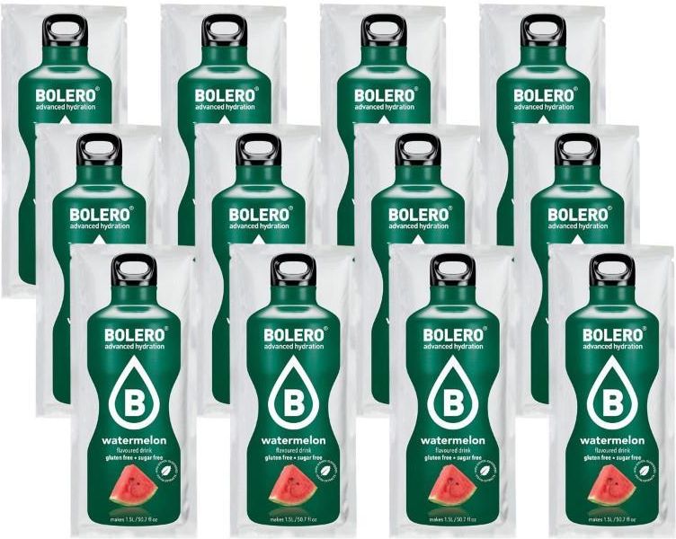 Napój o smaku arbuzowymBez cukruBez glutenuBez GMOBolero można mieszać z wodą (niegazowaną lub gazowaną) aby uzyskać orzeźwiający napój owocowy pełen witaminy C, ale całkowicie pozbawiony tłuszczu, glutenu i cukru. Są idealne dla całej rodziny.Napój wykonany jest z naturalnych ekstraktów owocowych. Jest bezglutenowy i przyjazny dla diabetyków.Można dodawać do gorącej lub zimnej wody, wody gazowanej, a nawet mleka! Mogą być używane do dodawania smaku jogurtowi, do robienia koktajli, do wytwarzania bezcukrowych lodów, galaretek, a także do tworzenia i dodawania smaku bezkalorycznemu sernikowi.Wartość odżywczaWielkość opakowania: 9 gSkładnikiw 100 mlWartość energetyczna9 kJ/ 2 kcalTłuszcz0 gKwasy tłuszczowe nasycone0 gWęglowodany0 gW tym cukry0 gBiałko0 gSól0 gWitamina C8 mgRWS – Dzienna referencyjna wartość spożycia<> Nie ustalono dziennej referencyjnej wartości spożyciaSposób użycia:Jedna saszetka Bolero Classic jest odpowiednia na 1,5 litra do 2,5 litra lub więcej, w zależności od preferencji. Dla uzyskania delikatniejszego smaku rozpuścić w większej ilości wody . Wystarczy wsypać, zamieszać i gotowe. Podczas korzystania z wody gazowanej zaleca się również rozpuszczenie napoju Bolero z niewielką ilością wody przed zmieszaniem jej z wodą gazowaną, ponieważ może wystąpić reakcja spieniania.Składniki:Kwasy: kwasek cytrynowy, kwas jabłkowy; włókno inulinowe; aromaty; substancje słodzące: acesulfam k, sukraloza, glikozydy stewiolowe, regulator kwasowości: cytrynian sodu; substancja przeciwzbrylająca: fosforan wapnia; substancja zagęszczająca: guma guar, guma arabska; kwas l-askorbinowy (witamina c); koncentrat z marchwi.