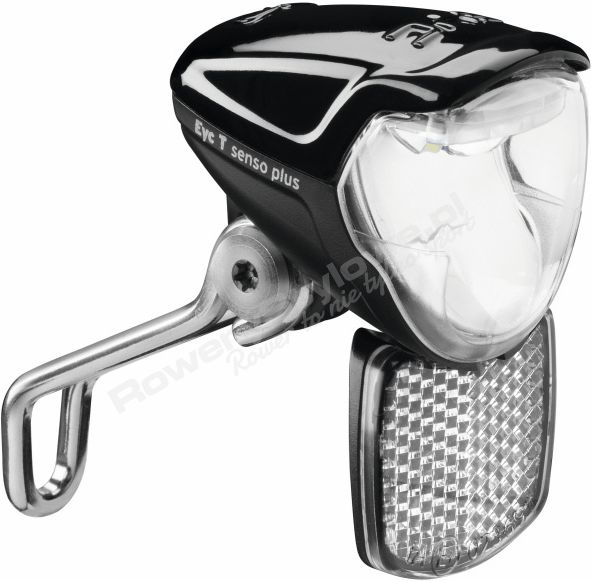 Przednia lampka rowerowa Busch & Muller Lumotec IQ2 Eyck T Senso Plus na dynamo w piaście to najnowsza i zarazem najmniejsza przednia lampka niemieckiego producenta. Lumotec IQ2 Eyck to młodszy brat sławnej już lampki LUXOS IQ2. Najlepsze słowa jakie określają tą lampkę to MAŁA, LEKKA i TANIA ! TECHNOLOGIA IQ2: Specjalny reflektor posiadający zoptymalizowane ustawiania diody LED o bardzo wysokiej mocy, pozycji żarnika, reflektora oraz systemu chłodzenia . Dioda LED na pierwszy rzut oka nie jest widoczna, umiejscowiona jest w górnej części lampy, dzięki czemu cały promień światła odbija się od wewnętrznego lustra. W technologi IQ2 zostały użyte specjalne pryzmaty, dla jak największego rozbicia mocnych wiązek światła, a dodatkowe diody wewnętrzne pozwalają osiągnąć niewiarygodnie wielką moc. Wersja Lumotec IQ2 Eyck T Senso Plus to: LIGHT 24 - diody do jazdy dziennej SENSO - w pełni automatyczny czujnik zmierzchu światło bliskiego zakresu - lampka oświetla pole już od 1 metra przed rowerem światło pozycyjne - lampka poprzez wbudowany kondensator świeci do 4 min po zatrzymaniu się ogromna moc światła 50 LUX - pozwoli na bezpieczną jazdę w ciemnym lesie bardzo niska waga tylko 70 gramów niewiarygodnie mała wielkości zapałki przedni odblask (z możliwością odłączenia) okablowanie i uchwyt lampki w komplecie przeznaczona pod dynamo w piaście lub tradycyjne 2 lata gwarancji made in Germany
