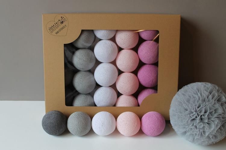 Kompozycja składa się z kul w kolorach mid grey, stone, white, light pink i light magenta.