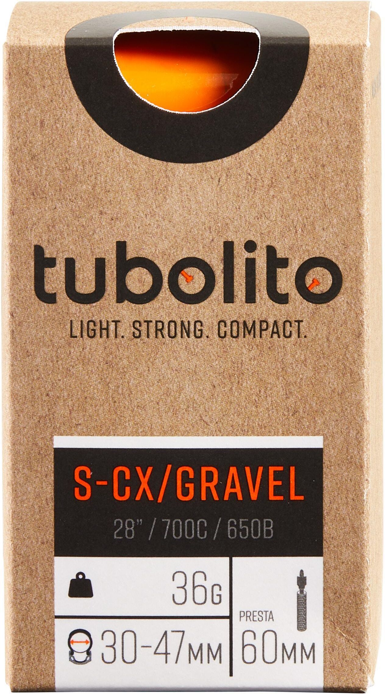 Dętka rowerowa Tubolito S-CX/Gravel 60 mm Do wyposażenia roweru gravelowego lub przełajowego w bardzo lekką i wytrzymałą dętkę. Waga piórkowa, zajmuje minimum miejsca, idealny partner Twoich przejażdżek. Lekkie, ważące tylko 36 g dętki Tubolito S-CX / GRAVEL zapewniają oszczędność 228 g w porównaniu do standardowych dętek, co może być kluczowe, gdy w grę wchodzi zdobycie cennych sekund. Kompatybilne przekroje opon: 30 do 47 mm. Średnica obręczy: 650B i 700C. Typ wentyla: Presta. Długość wentyla: 60 mm. Waga: 36 gramów. Dętka waży jedynie 36 g, co pozwala zmniejszyć wagę roweru. Bardzo małe opory toczenia.