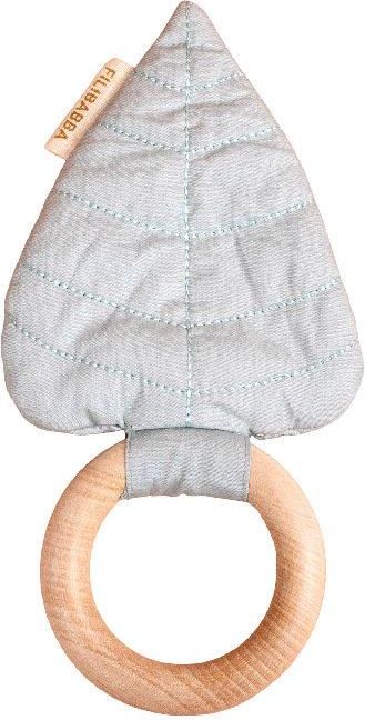 Grzechotka w kształcie liścia z drewnianym uchwytem, szeleści podczas zabawy. Wiek: 0+ Wymiary : 19cm Materiał: 100% bawełna organiczna, wypełnienie poliester