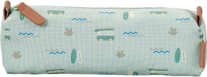 Fresk Piórnik Surf Uroczy piórnik Fresk pomieści wszystkie najpotrzebniejsze przybory małego ucznia.Piórnik zapinany jest na zamek błyskawiczny z wygodnym skórzanym uchwytem.Wykonany z przetworzonych butelek PET.Wymiary w przybliżeniu: 24 x 9 cm FB980-11
