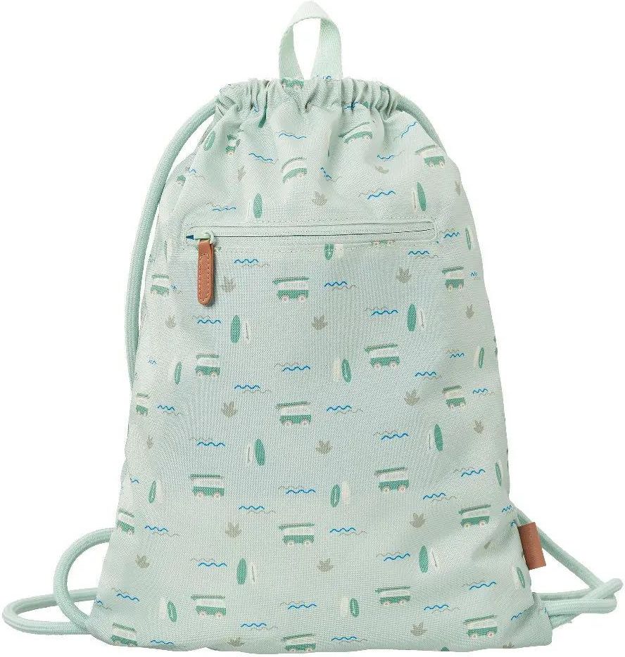 Super cool plecak worek, idealny na strój gimnastyczny czy rzeczy na basen. Wytrzymały materiał, doskonale izoluje wilgoć. Wyposażony w zewnętrzną kieszonkę, zamykaną na suwak, idealną do schowania kluczy czy chusteczek. Dzięki dodatkowej tasiemce łatwo zawiesić go na haczyku lub wieszaku. Wykonany z przetworzonych butelek PET. Wymiary: 42 x 23 cm.