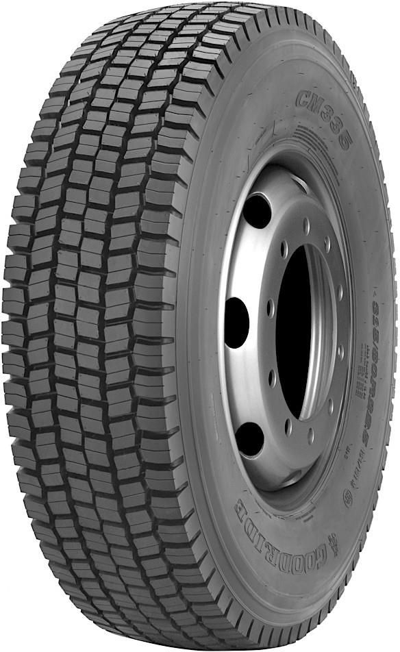 Opona Goodride model CM335 Opona przeznaczona na oś napędową. Opona przeznaczona do transportu dalekiego. cechy: Przy projektowaniu opony CM335 zastsowano komputerowe wspomaganie projektowania FEA co przedłużyło cykl życia opony. Duże bloki bieżnika zapewniają doskonałą przyczepność w każdych warunkach drogowych. Specjalna mieszanka bieżnika generuje mniej ciepła i zwiększa żywotność bieżnika.