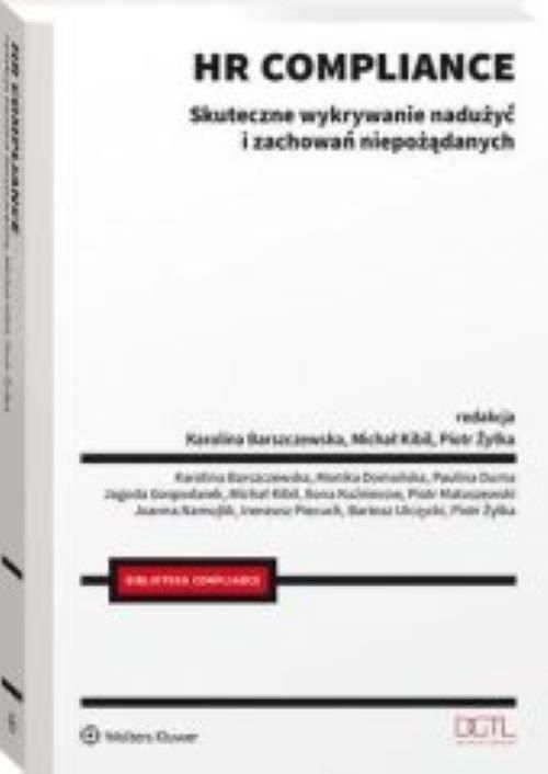 HR compliance jest to system działań pracodawcy i jego upoważnionych przedstawicieli lub struktur stworzony w celu kontroli przestrzegania prawa. Dotyczy obszarów związanych z pracownikami, w których członkowie organizacji mogą być zarówno sprawcami, jak i ofiarami naruszeń. Według autorów efektywne działania kontrolne powinny uwzględniać: • zapobieganie zachowaniom niepożądanym, takim jak mobbing, dyskryminacja czy molestowanie seksualne; • procedury przyjmowania i rozpatrywania zgłoszeń naruszeń prawa przez pracowników; • przestrzeganie przez pracodawcę praw pracowników. W publikacji omówiono zagadnienia takie jak: • odpowiedzialność członków zarządu; • zmniejszanie ryzyka związanego z wykorzystaniem technologii systemów rozproszonych; • cyberbezpieczeństwo cyfrowych kanałów zarządzania zgłoszeniami; • przykłady dobrych praktyk w zakresie tworzenia i implementacji systemów whistleblowingowych w Polsce. Dzięki lekturze książki czytelnik dowie się, jak krok po kroku stworzyć system HR compliance, aby był oparty na właściwych regulacjach oraz miał praktyczne zastosowanie. Publikacja przeznaczona jest zarówno dla pracowników i menedżerów działów HR, jak i dla prawników oraz specjalistów do spraw compliance. Zainteresuje również przedstawicieli kadry kierowniczej. „Zdecydowanie wartościowe jest połączenie idei przestrzegania norm i zasad z aktywnością działów HR i szerzej – z aktywnością pracodawców i kadry kierowniczej w dziedzinie zarządzania. Niektóre książki dostępne na rynku, w sposób zapewne niezamierzony, utrwalają podział na tak zwany miękki i twardy HR. W dzisiejszych realiach zarządzania biznesem, w świecie norm i standardów oraz coraz szybciej postępujących zmian, podejście holistyczne jest wysoce wskazane. I właśnie to podejście wybrzmiewa w niniejszej publikacji”. Jarosław Marciniak