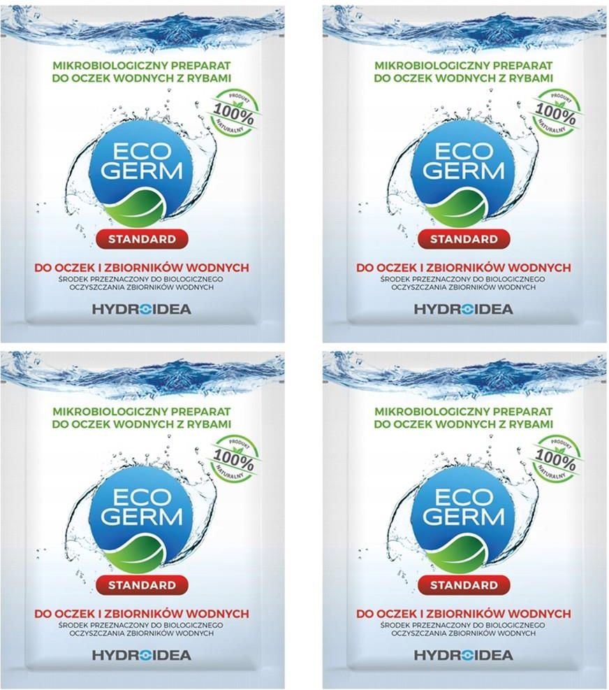 Hydroidea EcoGerm Standard Bakterie do oczka wodnego 4x 25g. Skoncentrowany, wysoce wydajny preparat mikrobiologiczny do profesjonalnego, naturalnego oczyszczania oczka wodnego lub stawu. Bezpieczna formuła na bazie kultur korzystnych bakterii saprofitycznych oraz enzymów.