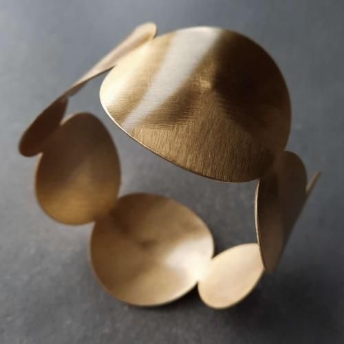 KRAUZA design Bransoletka BUBBLES złota Bransoletka została wykonana ręcznie ze srebra próby 925. Złoty kolor zawdzięcza procesowi elektroforezy. Szerokość 4,5 cm Średnica 6,5 cm Pamiętaj, że biżuteria jest wrażliwa na pryskanie perfumami. Po zdjęciu najlepiej przechowuj ją w zamkniętym pudełeczku …