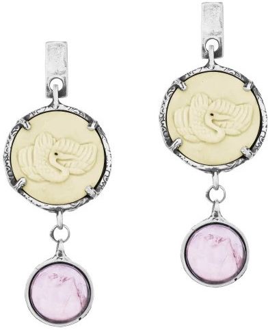 KOLCZYKI MOTYLE Biały Łabędź MS4667 Kolczyki srebrne – oksydowane, próba 925, wykonane ręcznie Wykończenie srebra: antyczne srebro Kamień naturalny: kwarc różowy o średnicy ok. 1,5 cm Ręcznie rzeźbiony element ozdobny z poroża jelenia o średnicy ok. 2,3 cm Długość całkowita kolczyków wynosi ok. 6,5 …