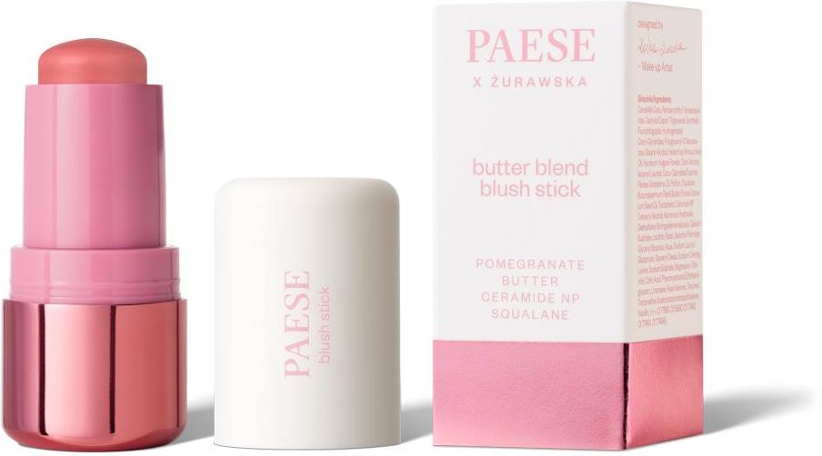 PAESE RÓŻ DO TWARZY W SZTYFCIE KREMOWY BUTTER BLEND 02 Bloom PAESE RÓŻ W STICKU BUTTER BLEND KOLOR: BLOOM 02 GRAMATURA: 6g LEKKA KONSYSTENCJA DOBRZE SIĘ BLENDUJE ZAPACH GRANATU Róż w sticku 02 BLOOM o niezwykle miękkiej, masełkowej konsystencji, który z łatwością rozprowadza się i wtapia w skórę. Idealnie współgra i blenduje się z innymi produktami nadając Twoim policzkom zdrowy, rumiany wygląd. Bogata pigmentacja pozwala stopniować intensywność koloru – od subtelnego muśnięcia po wyrazisty efekt. Wielofunkcyjna formuła sprawdzi się także na Twoich ustach czy powiekach, a apetyczny zapach granatu sprawi, że każda aplikacja będzie czystą przyjemnością. Nadaj skórze zdrowy rumieniec i subtelny blask w zaledwie kilka chwil. Nasz róż w sticku zachwyca masełkową, kremową formułą, która z łatwością stapia się ze skórą, tworząc efekt świeżej, promiennej cery – bez smug i plam. Dzięki kompaktowej formie idealnie sprawdzi się również w ciągu dnia – zmieści się w każdej torebce, zawsze gotowy do szybkich poprawek. Lekka konsystencja umożliwia równomierną aplikację bez naruszania makijażu, modelując rysy twarzy i nadając jej naturalny, wypoczęty wygląd. Wzbogacony o składniki aktywne, takie jak: masło z granatu, ceramid NP, skwalan oraz olej z awokado. Zapewnia skórze uczucie nawilżenia i komfortu przez cały dzień. AKTYWNE SKŁADNIKI masło z granatu, ceramid NP, skwalan oraz olej z awokado. Zapewnia skórze uczucie nawilżenia i komfortu przez cały dzień. Trzy odcienie stworzone w zgodzie z trendami, by podkreślić naturalne piękno każdej cery: Coral – świeży brzoskwiniowo-pomarańczowy ton, Bloom – delikatny róż o uniwersalnym charakterze, Peony – chłodny malinowy odcień dla efektu zdrowej skóry, Róż w sticku to połączenie makijażu i komfortu – dla promiennego wyglądu zawsze wtedy, gdy go potrzebujesz. SPOSÓB UŻYCIA Aplikuj róż w sticku bezpośrednio na kości policzkowe, delikatnie powyżej ich linii, kierując się ku skroniom – to optycznie unosi i modeluje twarz. Rozetrzyj produkt gąbeczką, pędzlem lub palcami, aż do uzyskania naturalnego efektu. Dla dodatkowego wymodelowania możesz nanieść odrobinę także na skronie lub czubek nosa. SKŁAD/INCI Candelilla Cera, Pentaerythrityl Tetraisostearate, Caprylic/Capric Triglyceride, Synthetic Fluorphlogopite, Hydrogenated Coco-Glycerides, Polyglyceryl-3 Diisostearate, Stearyl Alcohol, Helianthus Annuus Seed Oil, Hordeum Vulgare Powder, Cetyl Alcohol, Isoamyl Laurate, Coco-Caprylate/Caprate, Persea Gratissima Oil, Parfum, Squalane, Butyrospermum Parkii Butter, Punica Granatum Seed Oil, Tocopherol, Ceramide NP, Cetearyl Alcohol, Aluminum Hydroxide, Diethylhexyl Syringylidenemalonate, Calcium Sulphate, Lecithin, Rosin, Ascorbyl Palmitate, Glyceryl Stearate, Aqua, Sodium Lauroyl Glutamate, Glyceryl Oleate, Sodium Chloride, Lysine, Sodium Sulphate, Magnesium Chloride, Citric Acid, Phenoxyethanol, Ethylhexylglycerin, Limonene, Rose Ketones, Terpineol, Tetramethyl Acetyloctahydronaphthalenes, Vanillin, [+/-: CI 77891, CI 15850, CI 77492, CI 77491, CI 77499]. Podane składniki sa aktualne w momencie publikacji. Zawsze sprawdzaj opakowanie produktu.