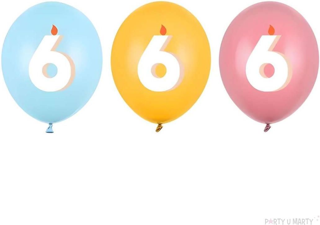 Partydeco Dekoracje Na Urodziny Balony Pastelowe Cyfra 6 Niebieskie Żółte Różowe 12 50szt. SB14P356000 Kalisz