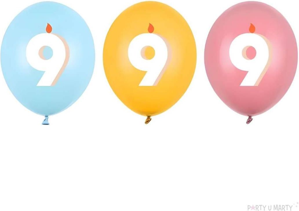 Partydeco Dekoracje Na Urodziny Balony Pastelowe Cyfra 9 Niebieskie Żółte Różowe 12 50szt. SB14P359000 Kalisz