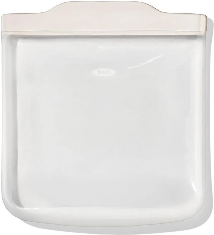 Pojemik silikonowy na kanapki 28oz Oat GoodGri / OXO Silikonowa torebka Good Grips Oxo: pojemność ok. 0,82 l, wielokrotnego użytku - przeznaczona do kontaktu z żywnością, wykonana z silikonu - bez BPA, PVC i ftalanów, bezszwowa konstrukcja, zamykanie strunowe, szeroki otwór, można mrozić i …