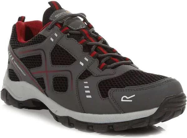 Męskie buty trekkingowe firmy REGATTA kod produktu: VENDEAVOUR RMF785 kolor: KAR GRANITE/RIO RED Wodoodporne i wygodne – trekkingowe męskie buty są idealne na przygodę na świeżym powietrzu. Dzięki oddychającemu materiałowi stopy pozostają świeże podczas długich wędrówek. Wycinana wkładka EVA zapewnią komfort przez cały dzień. Męskie buty do chodzenia z uszczelnionymi szwami z tkaniny Isotex ochronią przed deszczem i zachlapaniem. Buty wykończone kątownikami dla lepszej przyczepności. Sprawdzą się zarówno w górskim terenie, na leśnych ścieżkach jak i w codziennym użytkowaniu. PARAMETRY TECHNICZNE: Cholewka: materiał syntetyczny i techniczna siateczka wyprofilowana, wygodna wkładka EVA uszczelnione szwy z oddychającą wewnętrzną wyściółką membranową podeszwa zewnętrzna TPR wzmacniane noski język zszyty z cholewką Technologia Isotex: Wodoodporna, oddychająca i wiatroodporna technologia membranowa Nowa podeszwa zewnętrzna TPR z samooczyszczającymi się i ustawionymi pod kątem występami do napędzania, hamowania i zmniejszania zatykania