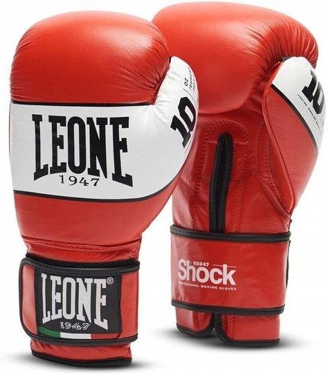 Rękawice bokserskie SHOCK marki Leone1947 10oz KOLOR: CZERWONY Kod producenta: 8052439265637 Rozmiar: 10oz Rękawice bokserskie GN047 SHOCK marki Leone1947.Atrakcyjny design, wyściółka o wysokiej absorbcji oraz skóra najwyższej jakości. Wybór najpopularniejszych sportowców ze świata boksu, kick …