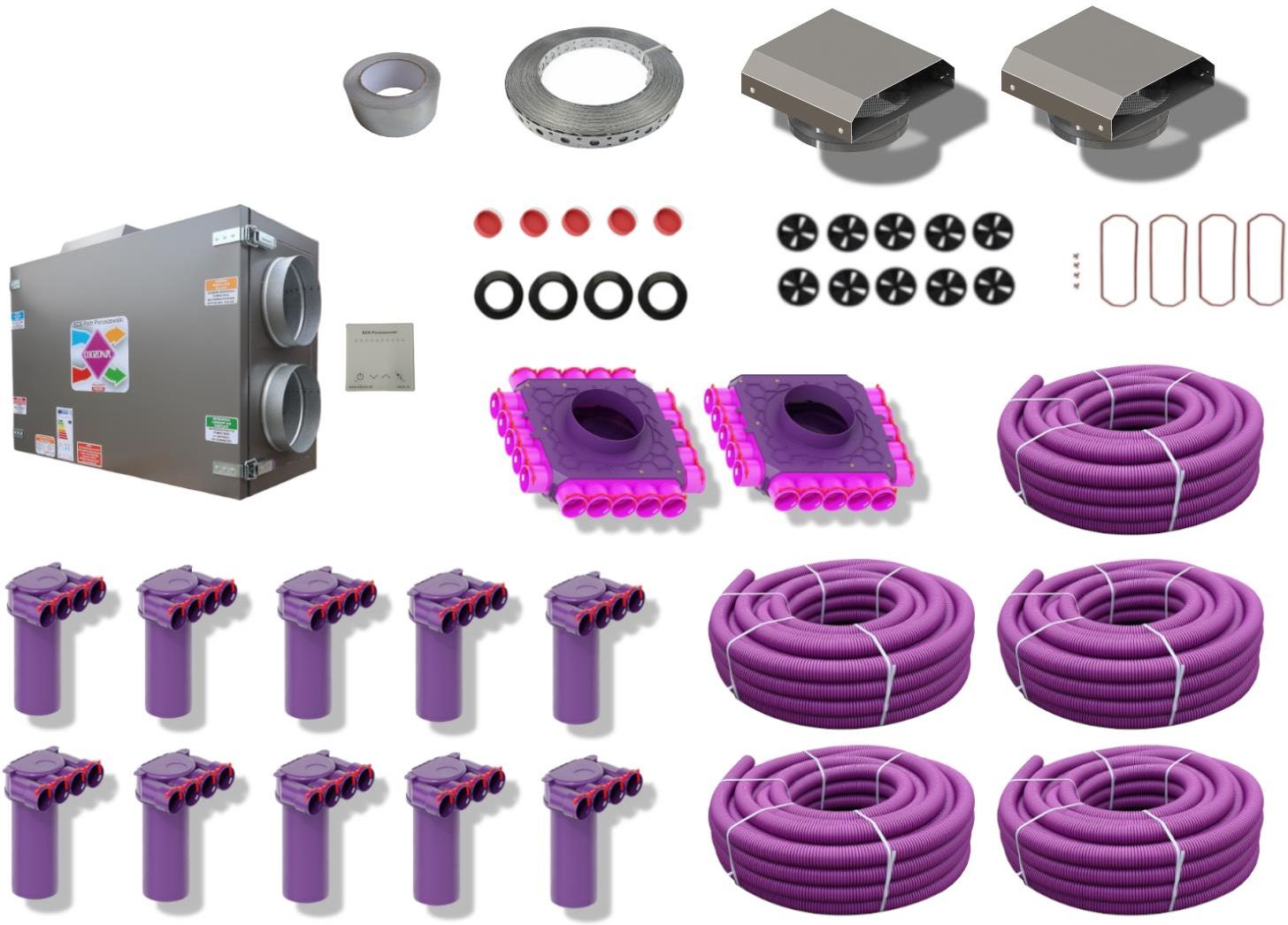 Kurs montażu systemu rekuperacji 50+ na posadzki 5cm styropianu 10cm posadzki ▶️https://www.youtube.com/watch?v=GF1mRaIuaEw Rekuperacja wentylacja centrala + zestaw z atestem na kanałach 63mm, dom 45-70m2 W skład zestawu wchodzi Rura wentylacyjna z powłoką antybakteryjną (30ppm Ag) 63mm - 250 mb (5 …