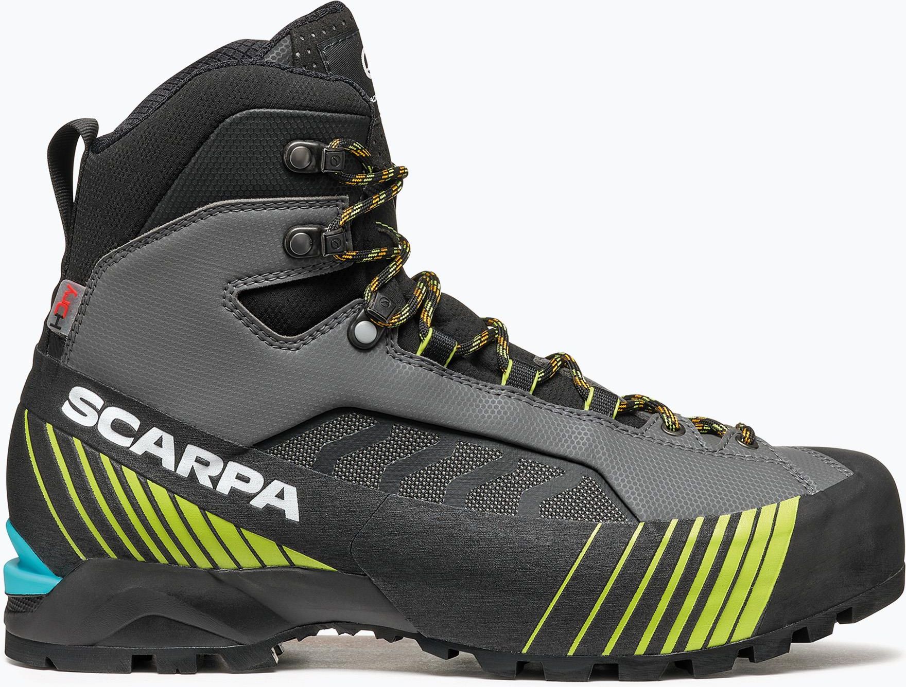 Buty do raków półautomatycznych Scarpa Ribelle Lite HD - iron gray/lime to nowa wersja kultowego modelu dedykowana miłośnikom alpinistycznych wyzwań. Cholewka wykonana z lekkich i wytrzymałych materiałów warunkuje niską wagę tego obuwia. W konstrukcji wykorzystano wodoodporną membranę HDry®, a podszewka w technologii 37.5® wykazuje zdolność do regulowania temperatury skóry stóp. Nowa wersja bestsellerowego modelu wysokogórskiego cechuje się niską wagą, a za sprawą systemu Dynamic Tech Roll buty oferują znakomity balans między wydajnością a oferowanym komfortem noszenia. Insert z tworzywa TPU przy pięcie sprawia, że buty są kompatybilne z rakami półautomatycznymi. Buty do raków półautomatycznych Scarpa Ribelle Lite HD - iron gray/lime wyposażono w membranę HDry®, która oferuje wysoki poziom wodoodporności. Twoje stopy będą więc chronione przed wodą i wilgocią podczas podejmowania alpinistycznych wyzwań. Membrana oferuje także optymalną oddychalność, co w połączeniu z podszewką w technologii HDry® zapewni sprawny transport wilgoci z dala od skóry stóp. Anatomiczne dopasowanie buta do stopy zapewnia system Sock-Fit XT, który lekko i precyzyjnie owija stopę, zapewniając jej wsparcie oraz stabilizację. Prezentowane buty wykorzystują konstrukcję podeszwy Precision Tech Roll. Znakomita przyczepność oferowana przez ten model jest zasługą podeszwy zewnętrznej Vibram® Mont wyposażonej w specjalne strefy odpowiadające za napęd, hamowanie oraz zwiększoną przyczepność. Wydajne tłumienie wstrząsów i drgań zapewnia podeszwa środkowa wykorzystująca piankę PU o różnej gęstości. Buty do raków półautomatycznych Scarpa Ribelle Lite HD - iron gray/lime posiadają lekką cholewkę wykonaną z materiału tekstylnego oraz wstawek z mikrofibry. W efekcie model cechuje się jeszcze niższą wagą niż obuwie Scarpa Ribelle HD. Pełny otok 360° sprawia, że but jest wysoce odporny na uszkodzenia mechaniczne, a stopa zyskuje odpowiednie zabezpieczenie przed urazami. Buty Scarpa Ribelle Lite HD - iron gray/lime – najważniejsze cechy: Ultralekki but wysokogórski; Podszewka wykonana z zastosowaniem membrany HDry® oferuje wysoki poziom wodoodporności; Optymalna oddychalność membrany HDry® sprawi, że nadmiar wilgoci będzie na bieżąco odprowadzany; Cholewka wykonana z materiału tekstylnego, ze wstawkami z mikrofibry; Technologia 37.5® w podszewce oferuje komfort termiczny, który ogranicza możliwość przegrzewania; System Sock-Fit XT, który idealnie otula stopę, umożliwiając jej naturalne ułożenie oraz stabilizując ją; Gruby gumowy otok z tworzywa chroni cholewkę przed uszkodzeniami; Wspinaczkowy system wiązań sięga czubka palców i pozwala na precyzyjne i strefowe dowiązanie; Buty kompatybilne z rakami półautomatycznymi; Podeszwa środkowa wykonana z PU o różnej gęstości; Pianka PU o średniej gęstości w tylnej części odpowiada za wsparcie i stabilność stopy; PU o niskiej gęstości w środkowej i przedniej części podeszwy środkowej odpowiada za lekkość i amortyzację; Nacięcia na podeszwie zapewniają dodatkową stabilność w okolicach pięty; Podeszwa zewnętrzna podzielona na specjalne strefy odpowiadające za hamowanie, napęd i maksymalną przyczepność. Rozwiązanie Dynamic Tech Roll System, które zapewnia maksymalną synergię pomiędzy komfortem a wydajnością.