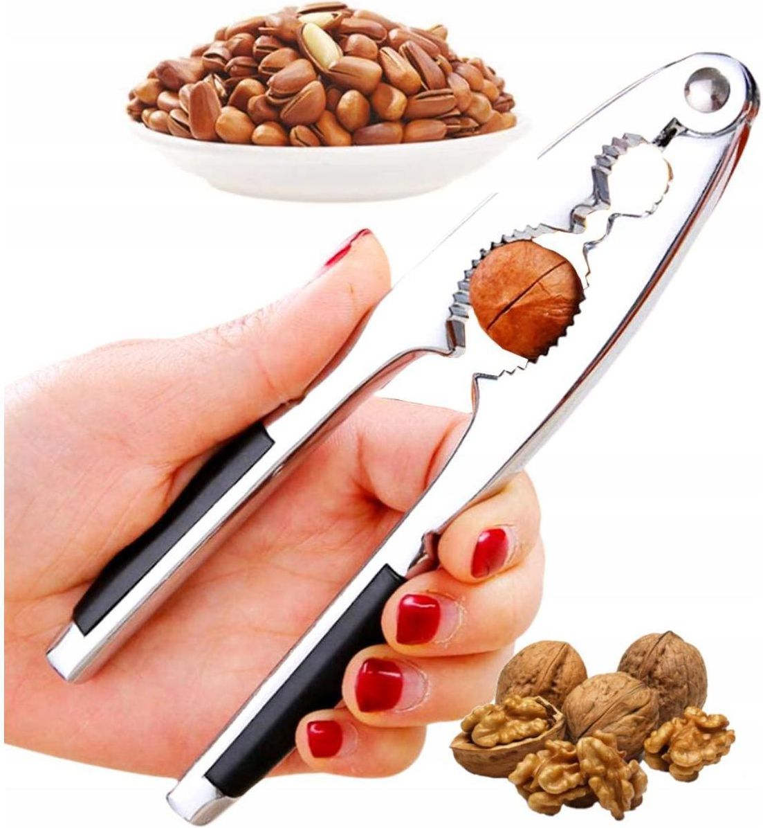 Solidny dziadek do orzechów z gumowanymi rączkami Solidny dziadek do orzechów wykonany ze stali nierdzewnej Jego konstrukcja dopasowuje się do większości gatunków orzechów Sprawdzi się zarówno podczas łupania orzechów laskowych, włoskich lub migdałów Polecamy również do łupania owoców morza, krabów, skorupiaków, ostryg, itp. Gumowane rączki chronią przed ślizganiem się urządzenia w rękach, dzięki temu praca z nim jest bezpieczna Solidna i wysoka jakość wykonania. Dziadek do orzechów wykonany jest z wysokiej jakości stali nierdzewnej oraz gumy, gwarantuje to odporność na uszkodzenia i zapewnia długotrwałe użytkowania Zajmuje mało miejsca w kuchennej szufladzie i zawsze będzie pod ręką długość 16 cm