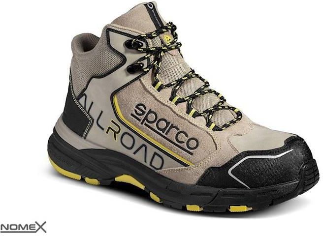 Buty Sparco Allroad Hi 07529 TAGI S3 - 46 Klasa ochrony S3 SRC ESD HRO Metal Free. Nosek kompozytowy o odporność 200J, wkładka antyprzebiciowa kompozytowa. Podszewka - oddychająca siatka. Wykonane z nubuku i zamszu. Lekka podeszwa z phylonu i kauczuku nitrylowego HRO.