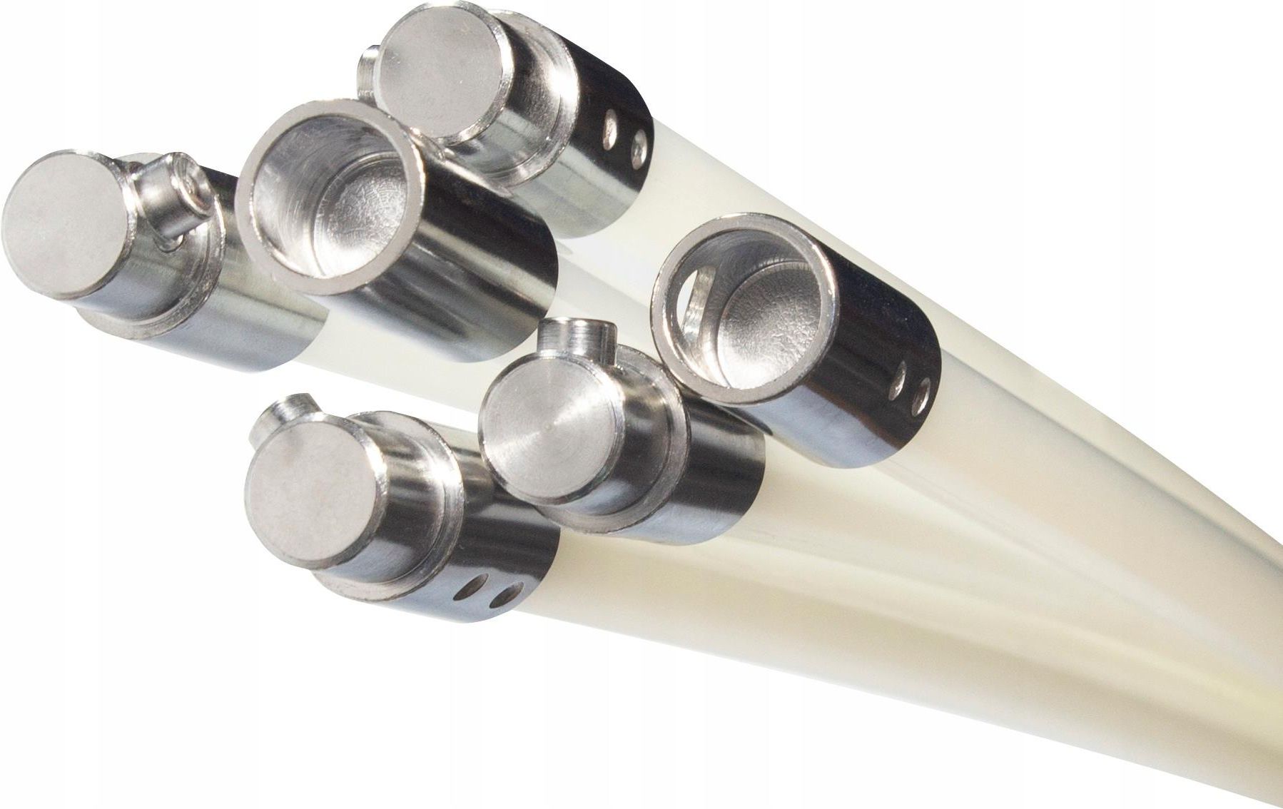 Elastyczna przedłużka do zestawu Tajfun 1 sztuka długość: 1m Elastyczne przedłużki nylonowe służą do powiększanie długości zestawu czyszczącego TAJFUN (standardowo zestaw TAJFUN zawiera 6 szt. 1 metrowych elastycznych przedłużek nylonowych). Przedłużki wykonane są ze szczególnie mocnego, elastycznego i odpornego na odczynniki chemiczne materiału - nylonu. Nylon nadaje trwałości i odporności oraz szczególnej giętkości, która pozwala pokonać wszystkie zakręty i zawsze dotrzeć do wierzchu komina. Przedłużki nadają się do dowolnej średnicy i długości kominów i przewodów kominowych wykonanych z metalu, ceramiki, czy cegły. Nadają się również do zakrzywionych kominów i przewodów kominowych. Nie powodują uszkodzeń ścian wewnętrznych komina lub przewodu kominowego. Długość elastycznego pręta - 100 cm.
